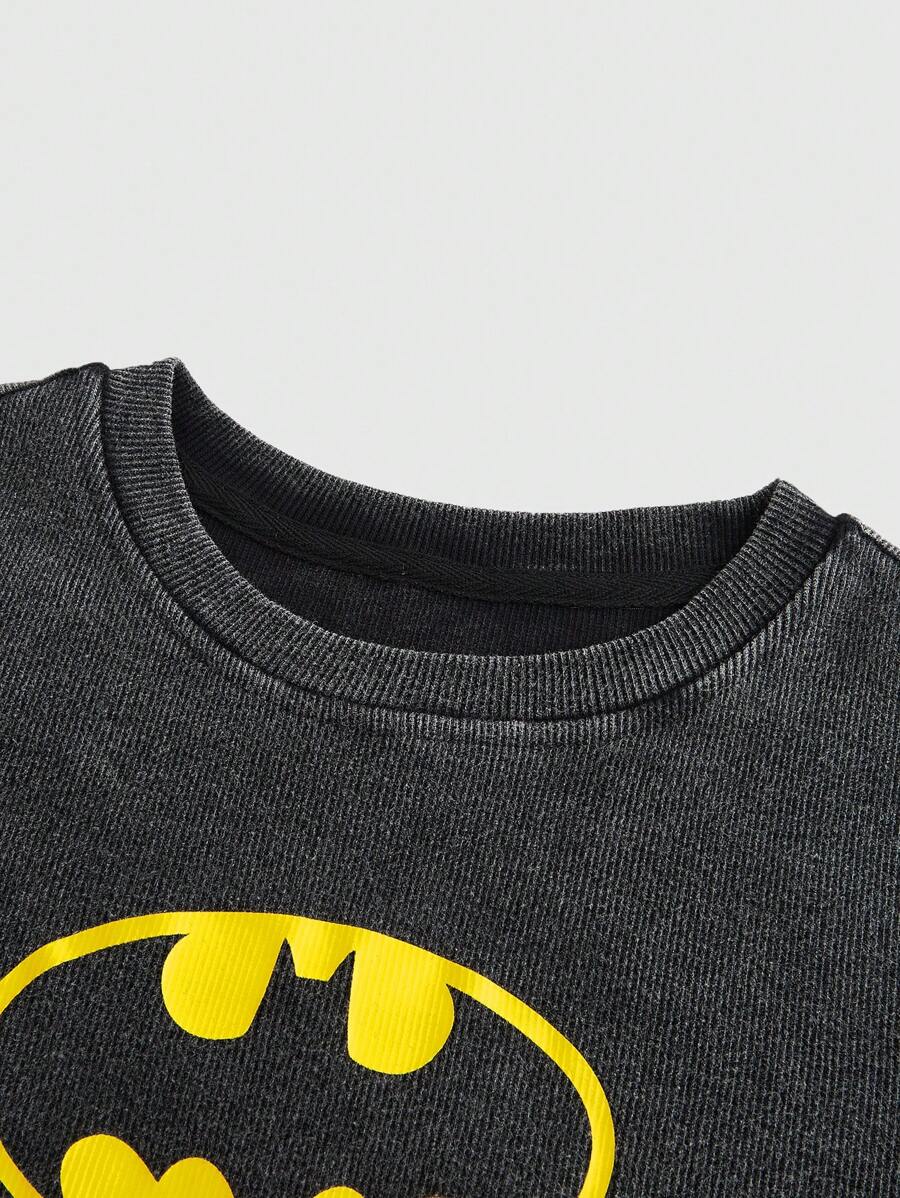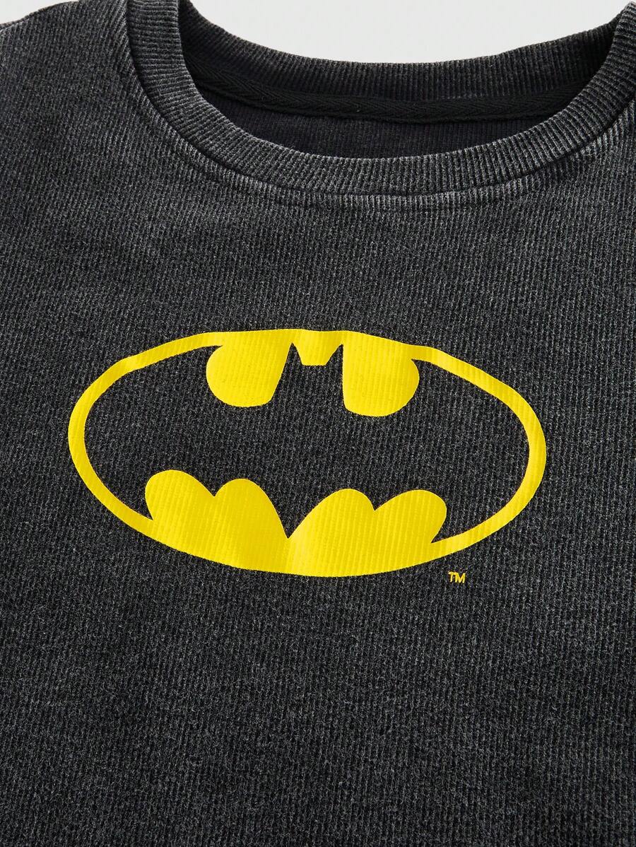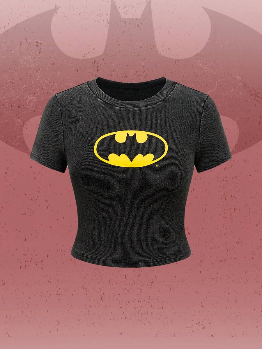 Batman X ROMWE Casual Bat Logo Printed Slim Fit T-Shirt, Summer