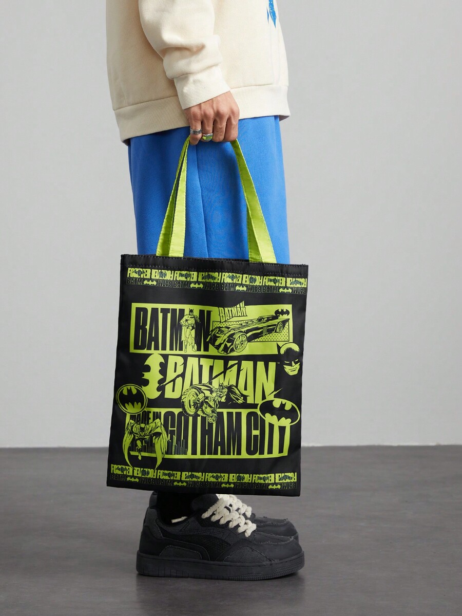 Batman X ROMWE Double-Sided Cartoon & Letter Print Tote Bag