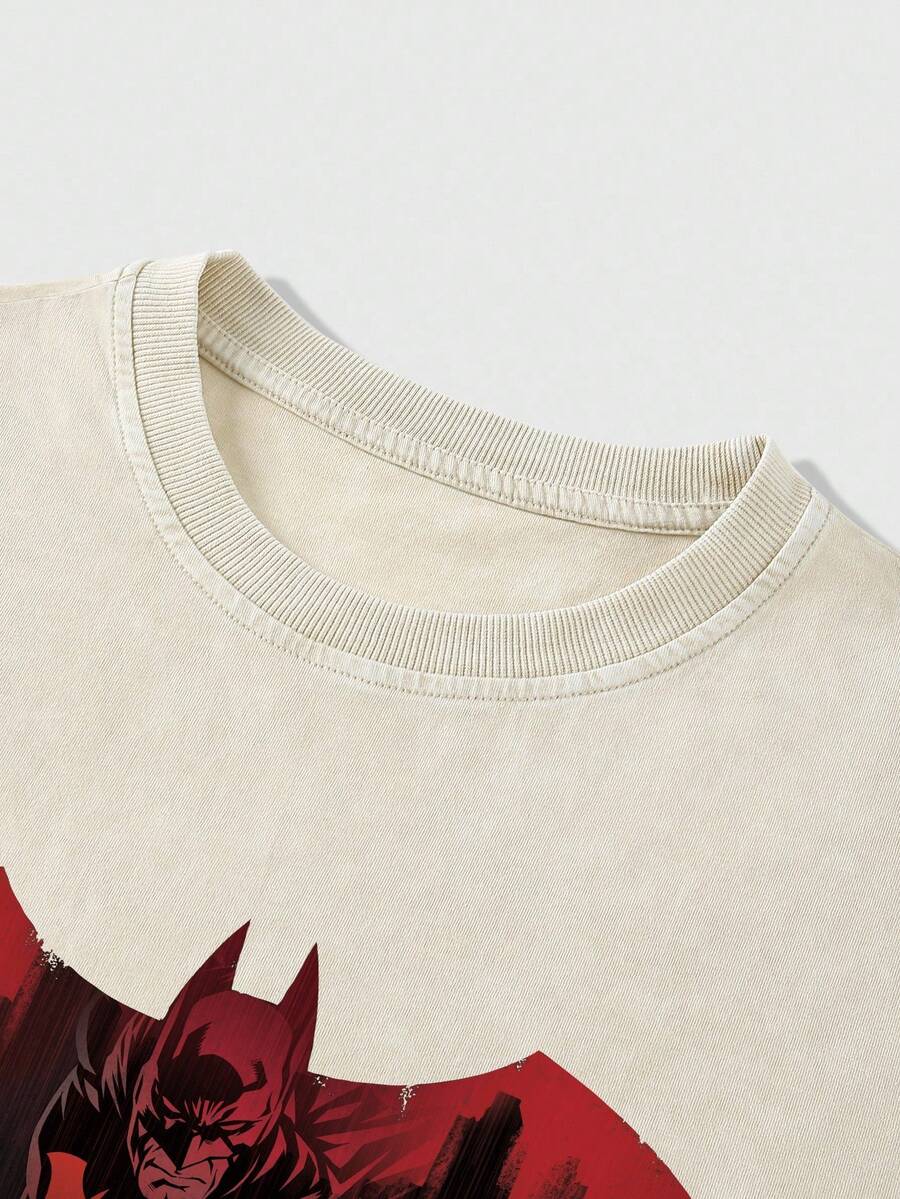 Batman X ROMWE Men's Letter & Figure Graphic Print Crew Neck Short Sleeve T-Shirt
