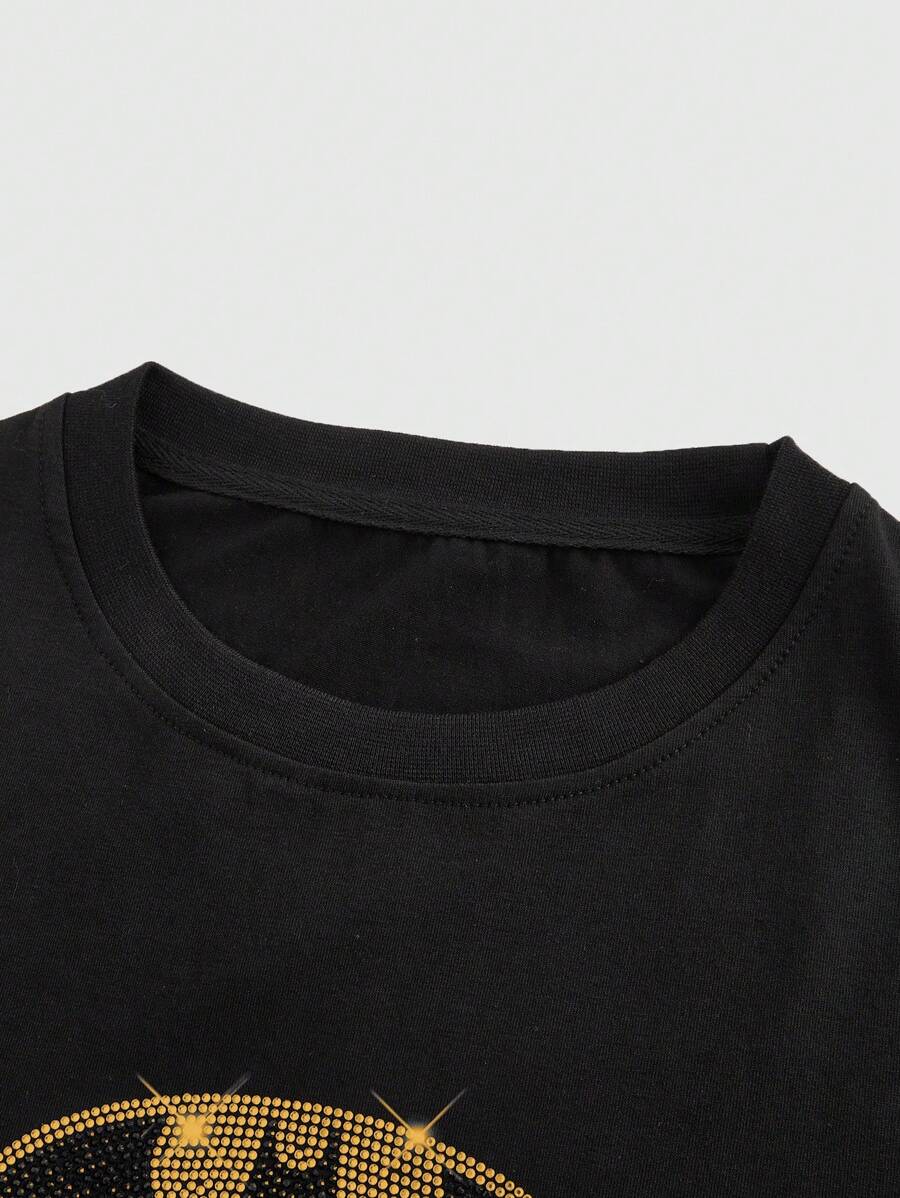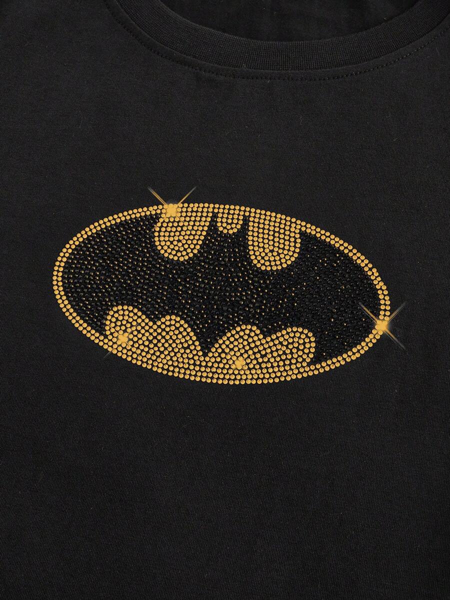 Batman X ROMWE Streetwear Style Rhinestone Batwing Pattern Short Sleeve T-Shirt
