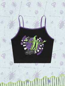 Beetlejuice | ROMWE Contrast Purple & Green Elastic Fitted Women's Camisole Top
