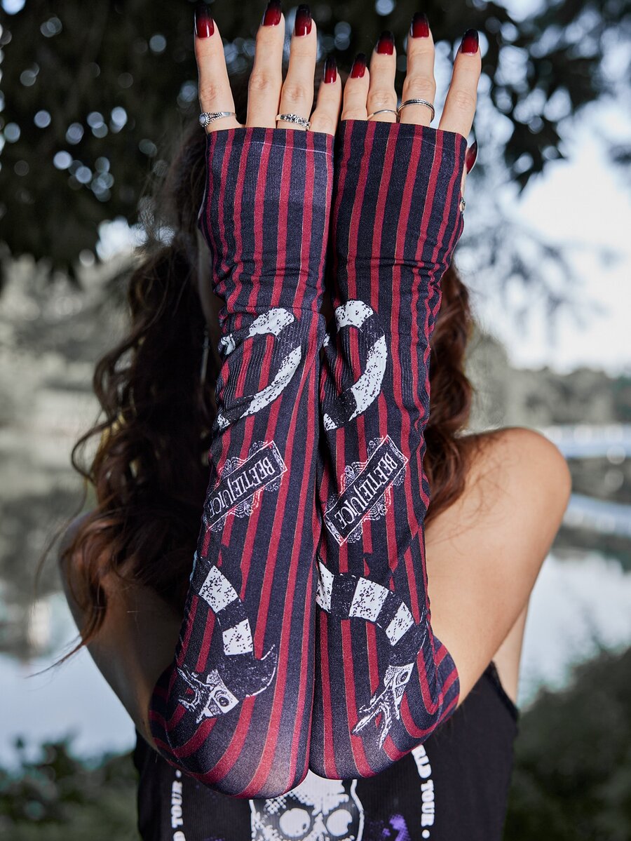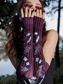 Beetlejuice | ROMWE Striped & Letter Graphic Fingerless Gloves