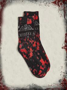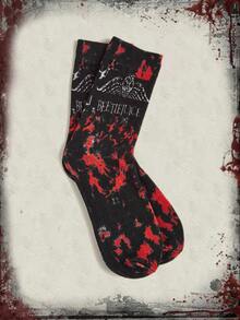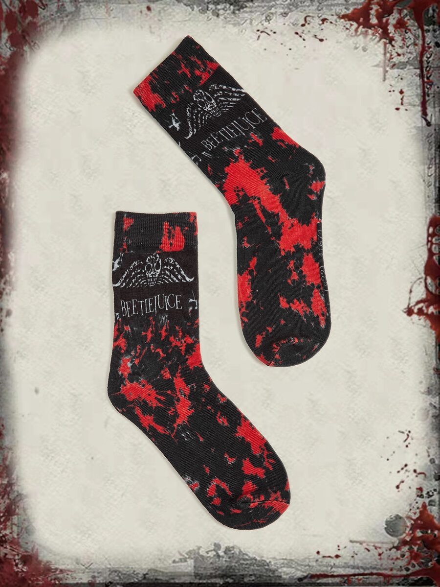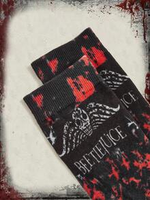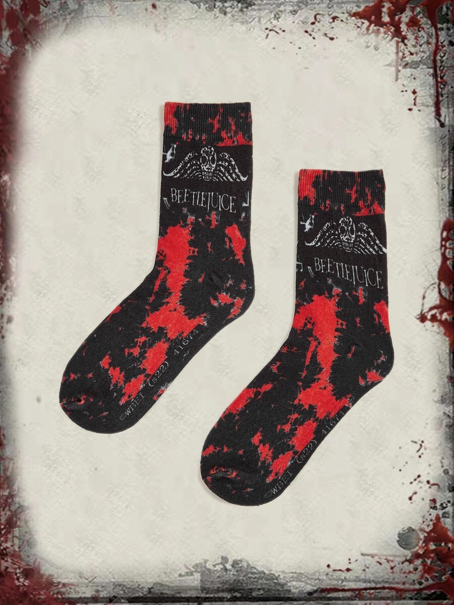 Beetlejuice | ROMWE Tie Dye Skull & Letter Graphic Crew Socks