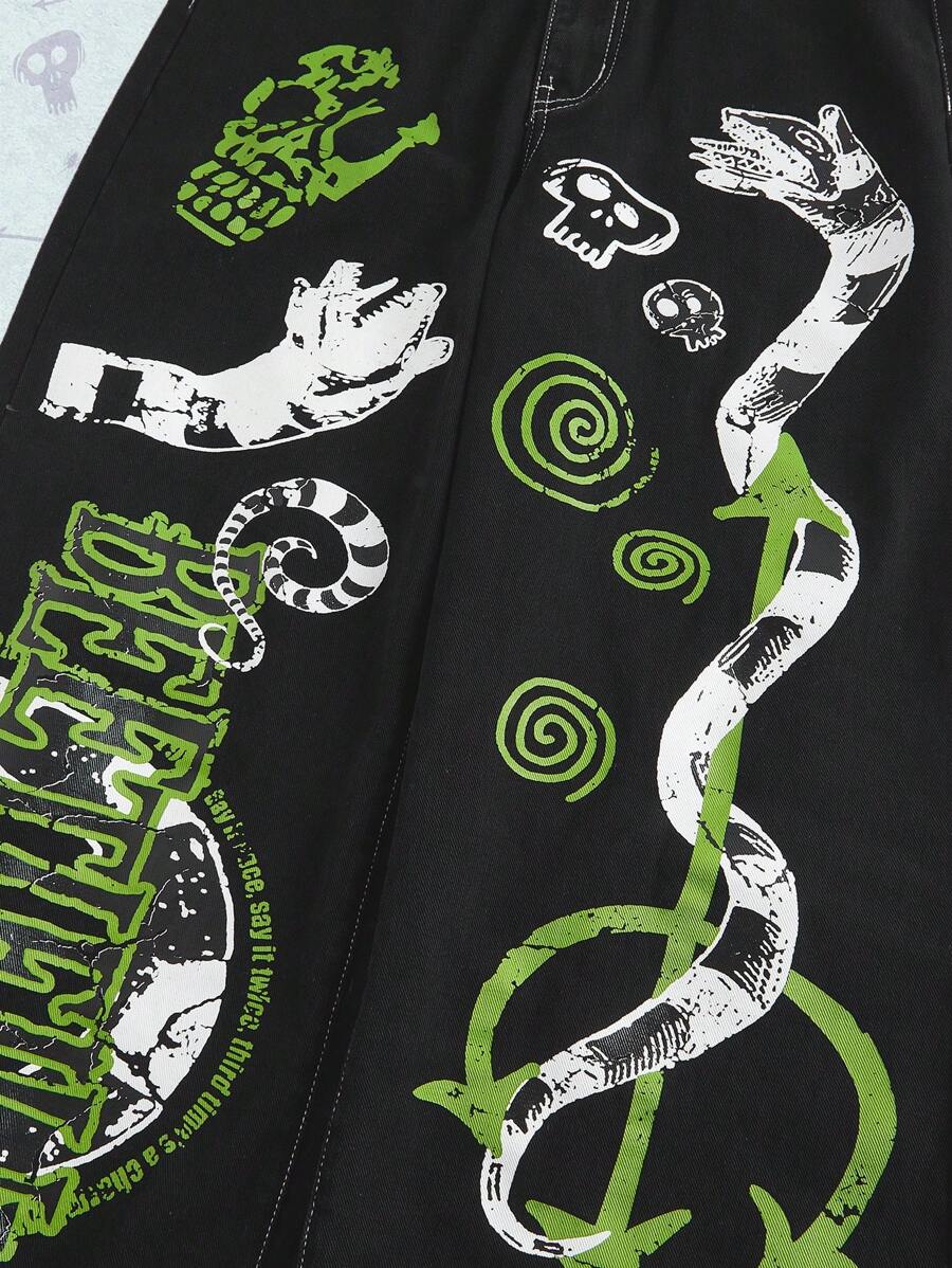 Beetlejuice | ROMWE Women's Casual Dark Street Chic Cartoon & Letter Print Wide-Leg Boy Friend Jeans