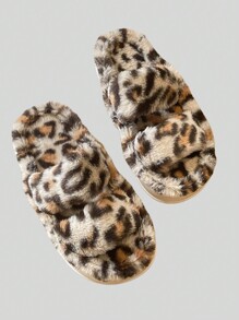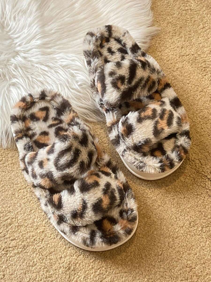 Beige Leopard Print Fluffy Thick Sole Fluffy Slippers For Women, Winter