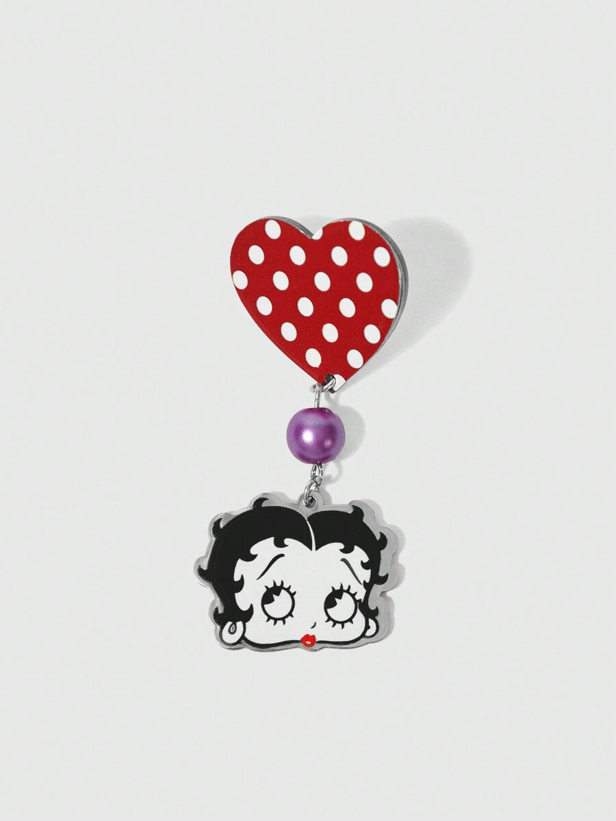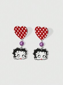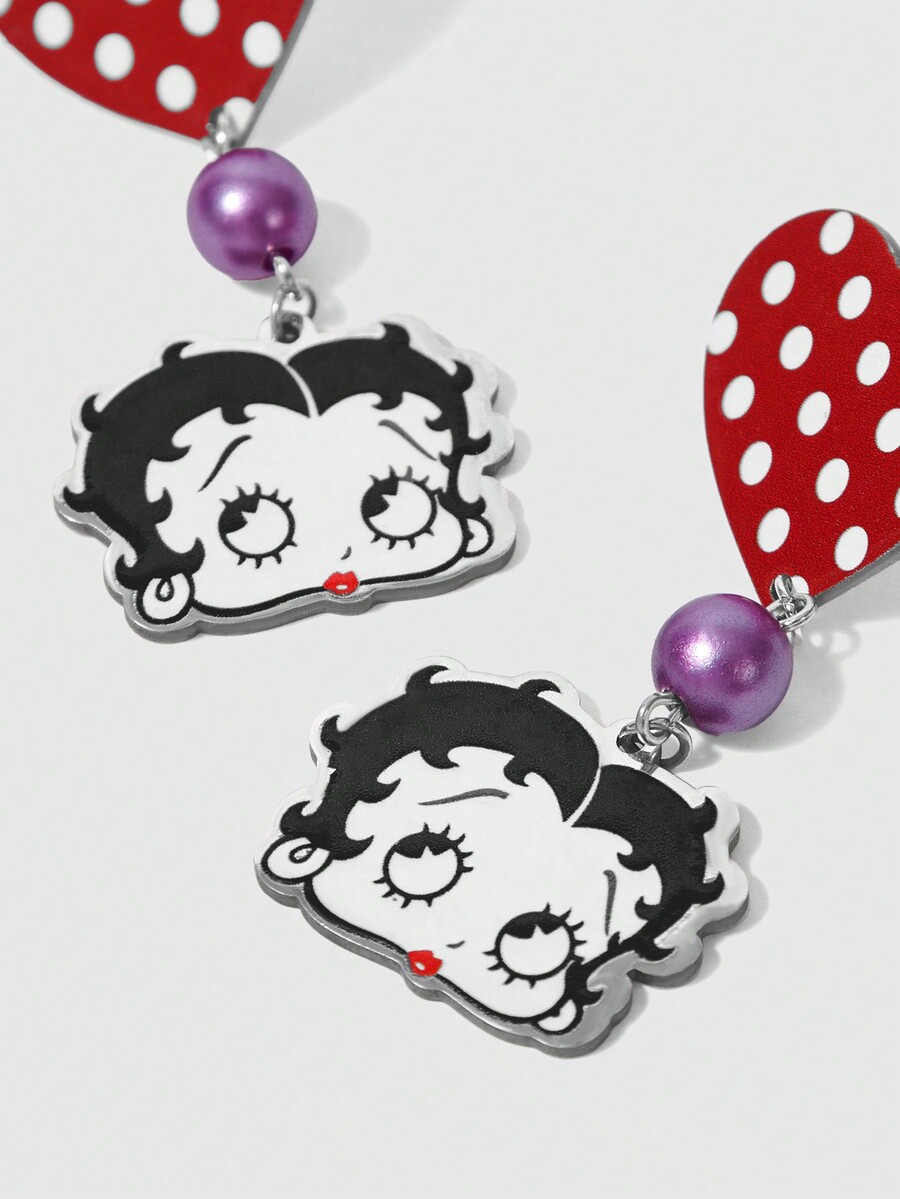Betty Boop | ROMWE 1pair Cartoon Character & Polka Dot Heart Purple Faux Pearl Earrings