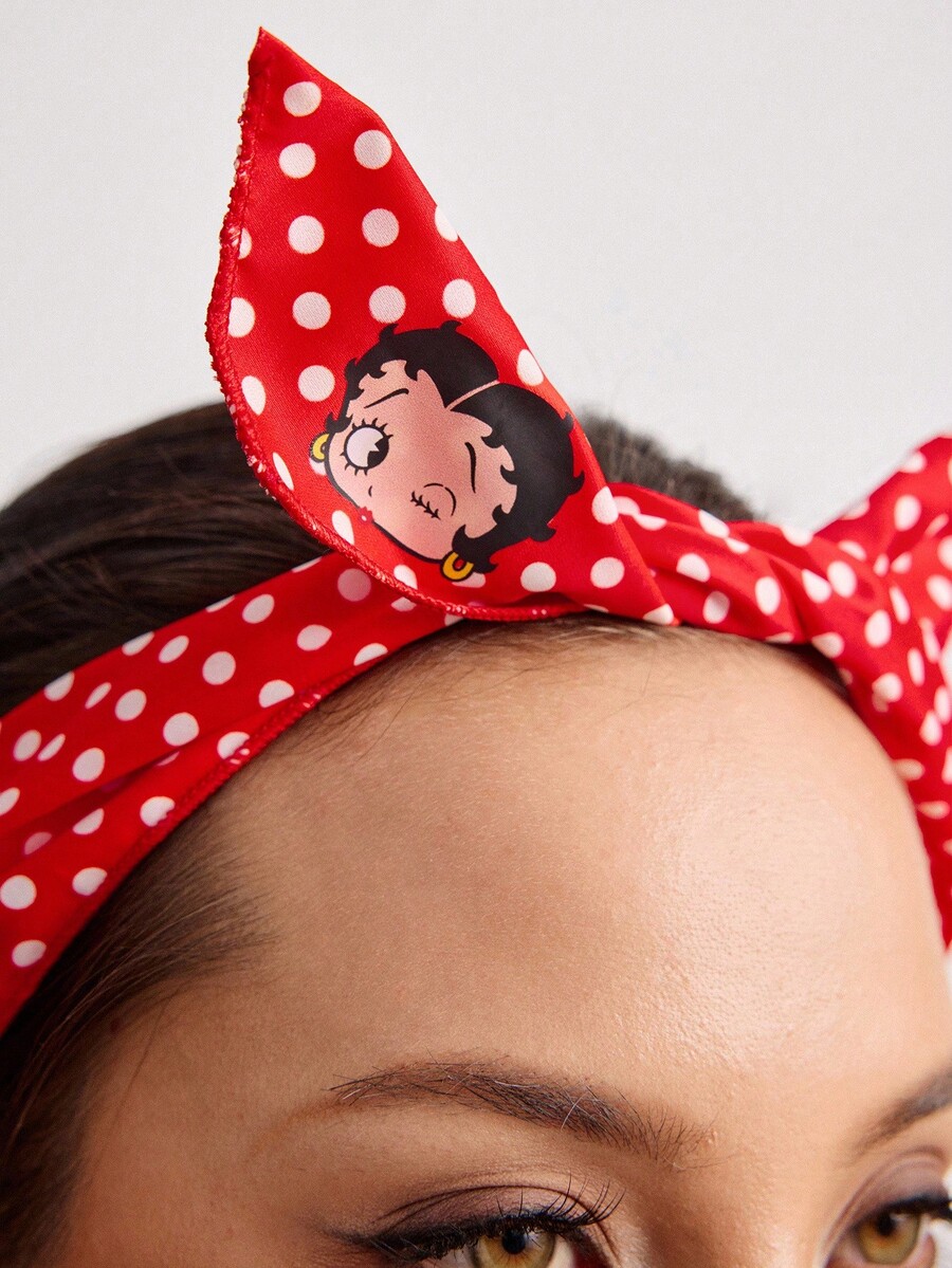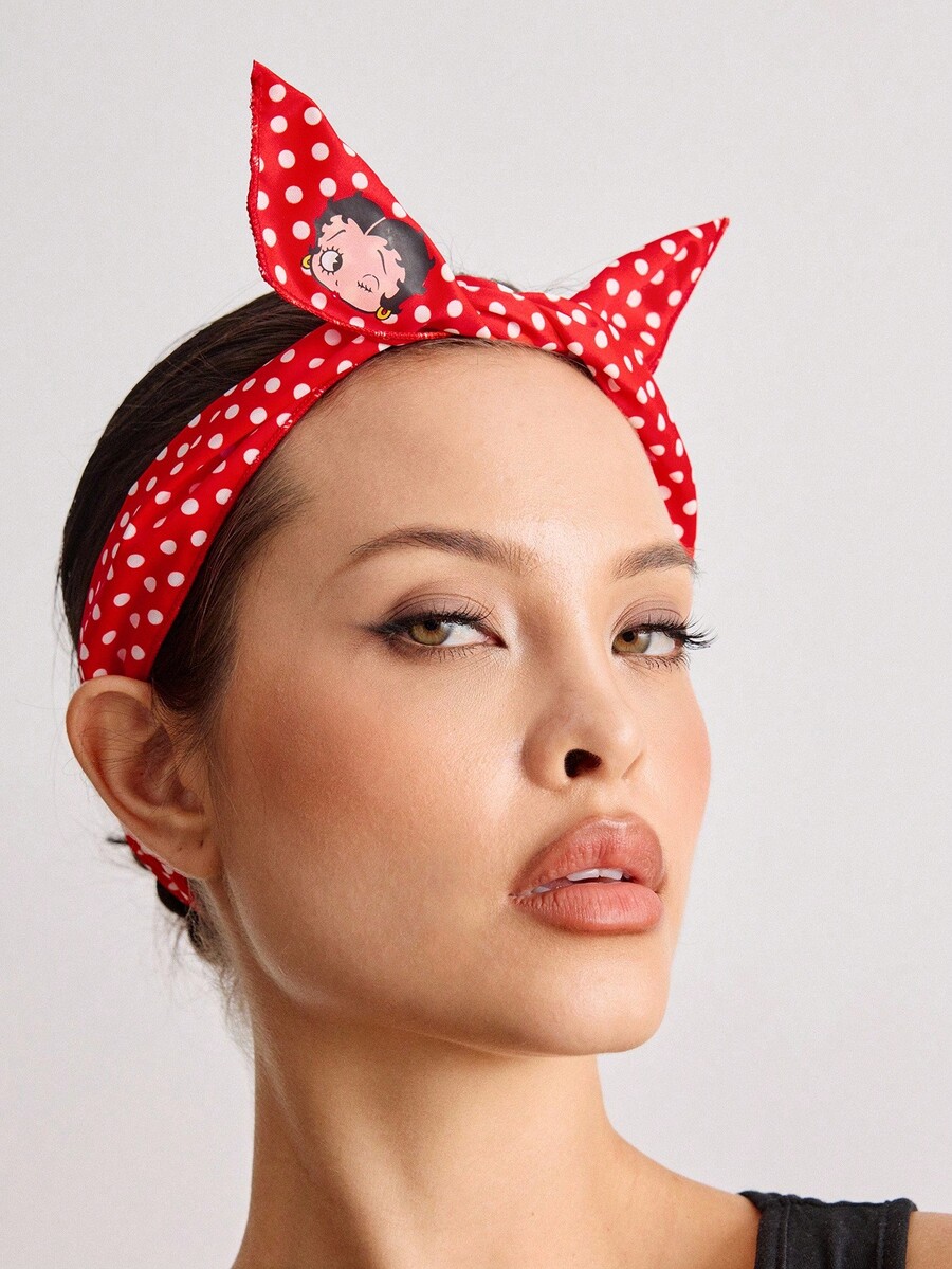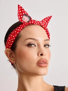 Betty Boop | ROMWE 2pcs/Set Women's Fashionable Elegant Polka Dot & Cartoon Figure Graphic Headband & Hair Hoop
