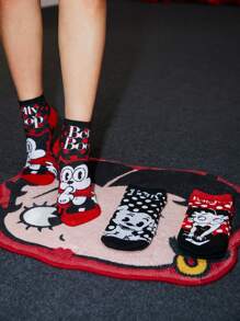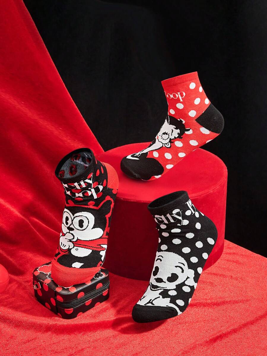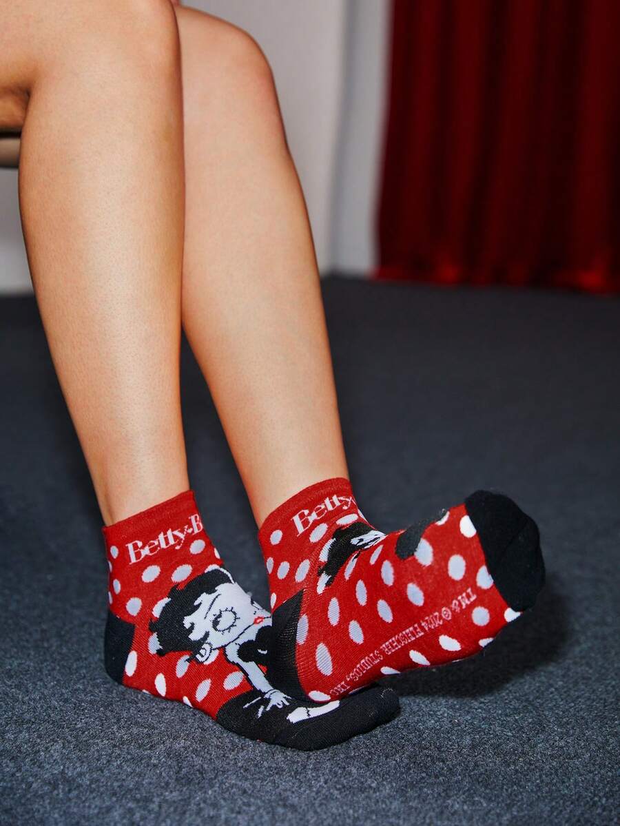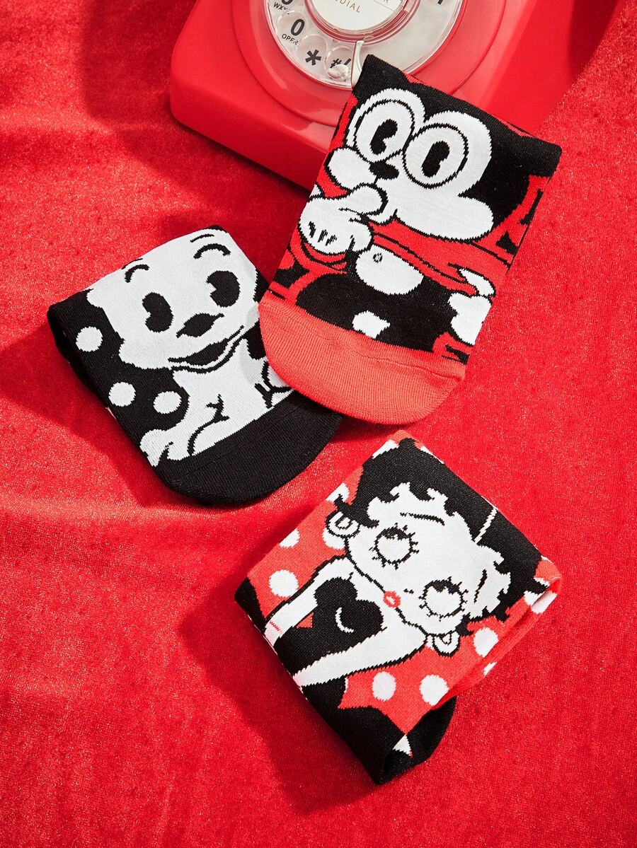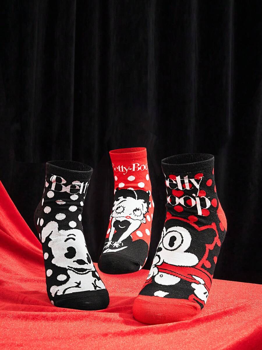 Betty Boop | ROMWE 3 Pairs/Set Women Cartoon Letters Print Short Socks