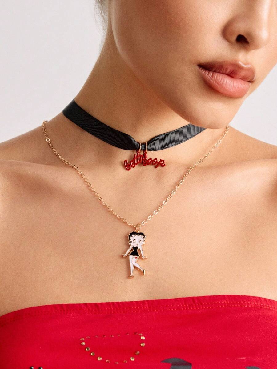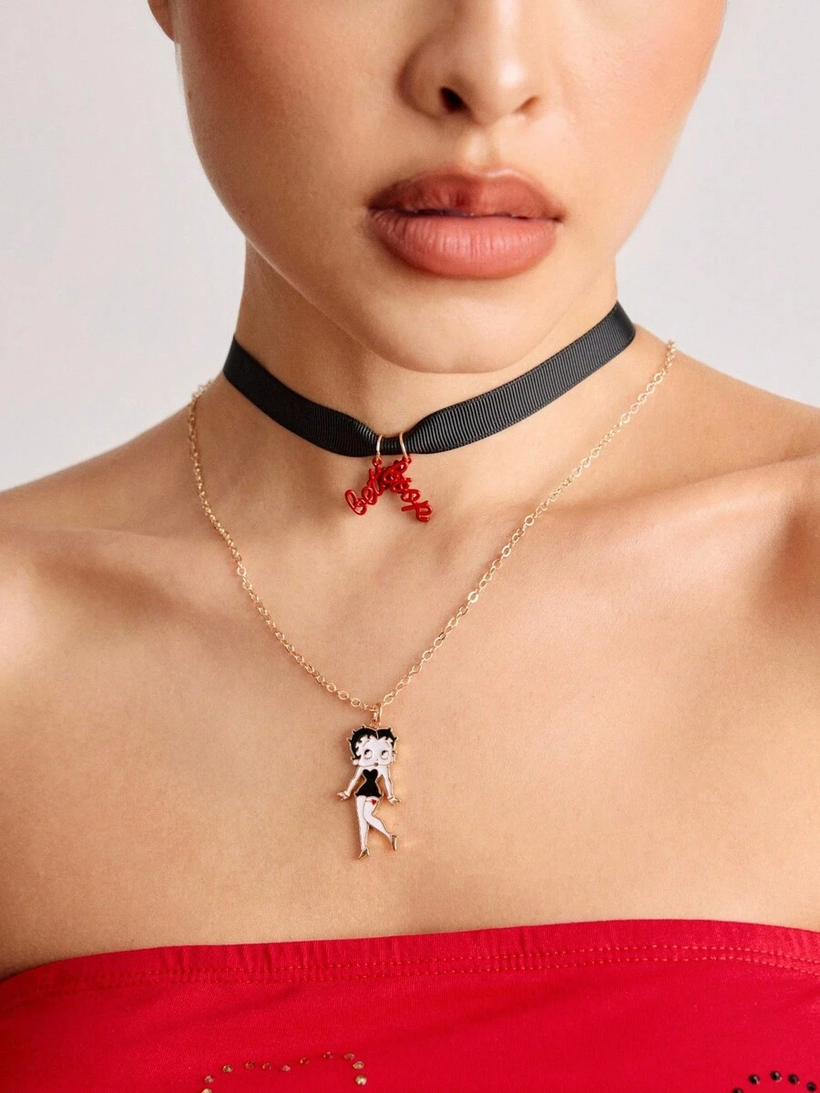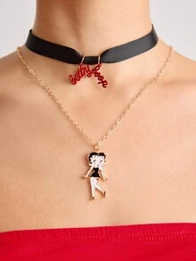 Betty Boop | ROMWE Letter Pattern Choker & Necklace Set, Fashion
