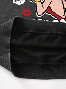 Betty Boop | ROMWE Men's Cartoon Figure Graphic Washed Hoodie