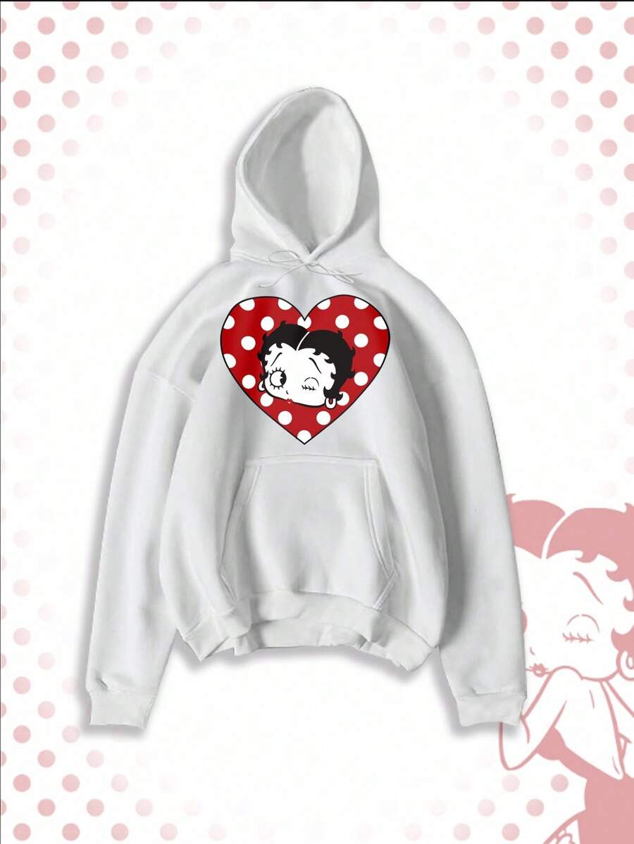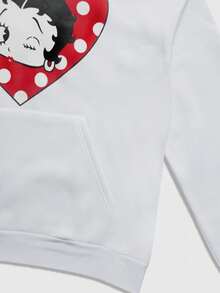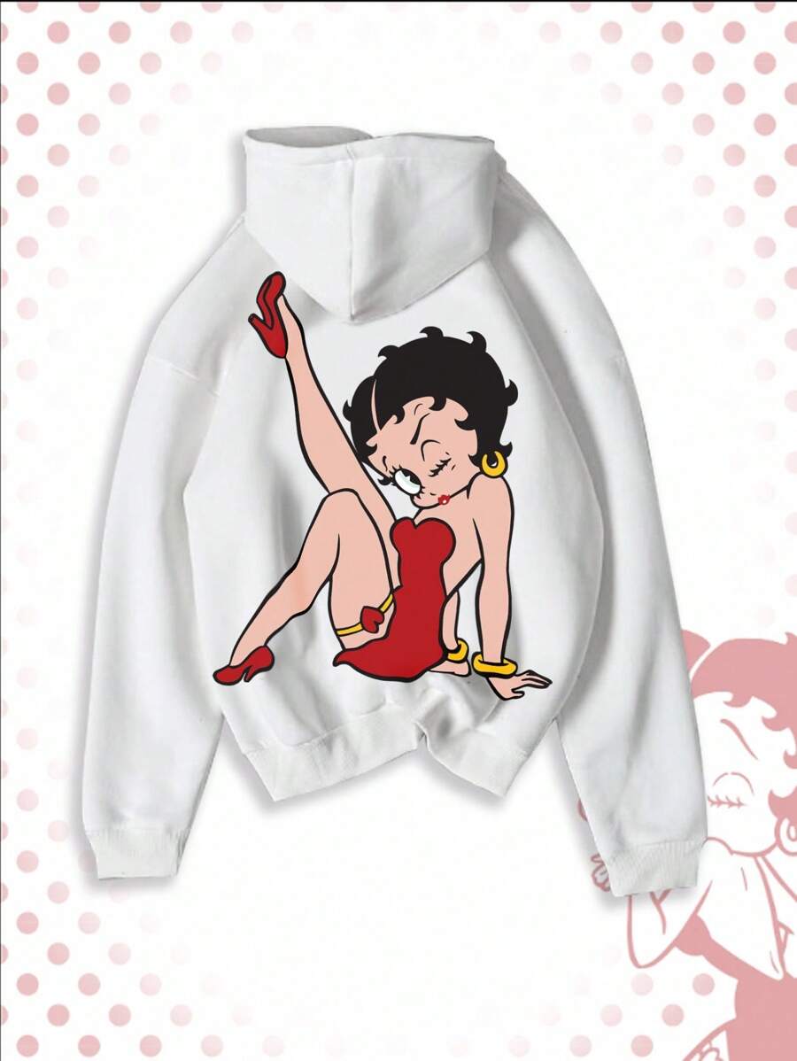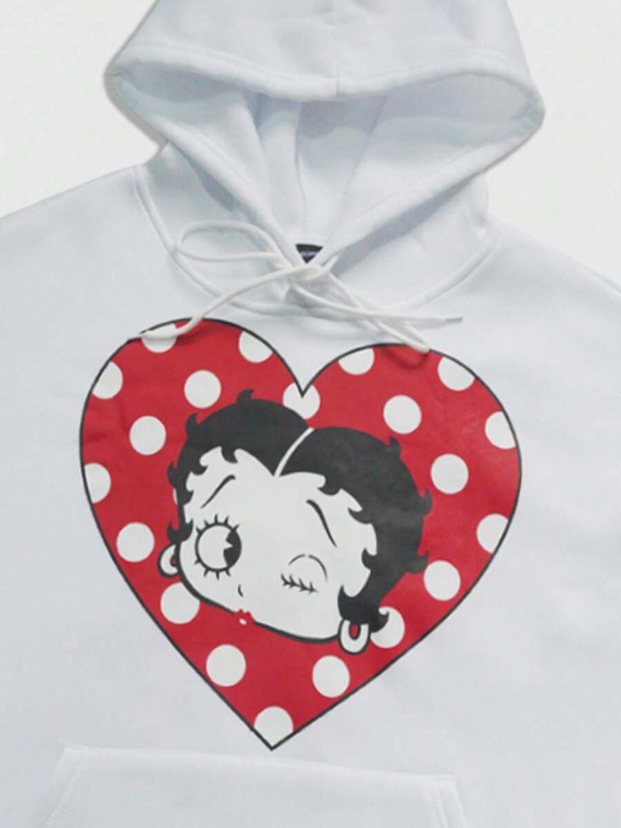Betty Boop | ROMWE Men's Cartoon Figure Graphic White Drawstring Hoodie Sweatshirt
