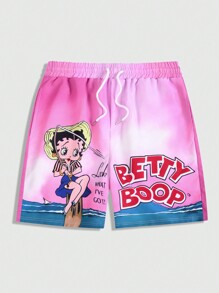 Betty Boop | ROMWE Men's Casual Figure & Letter Graphic Woven Shorts, School