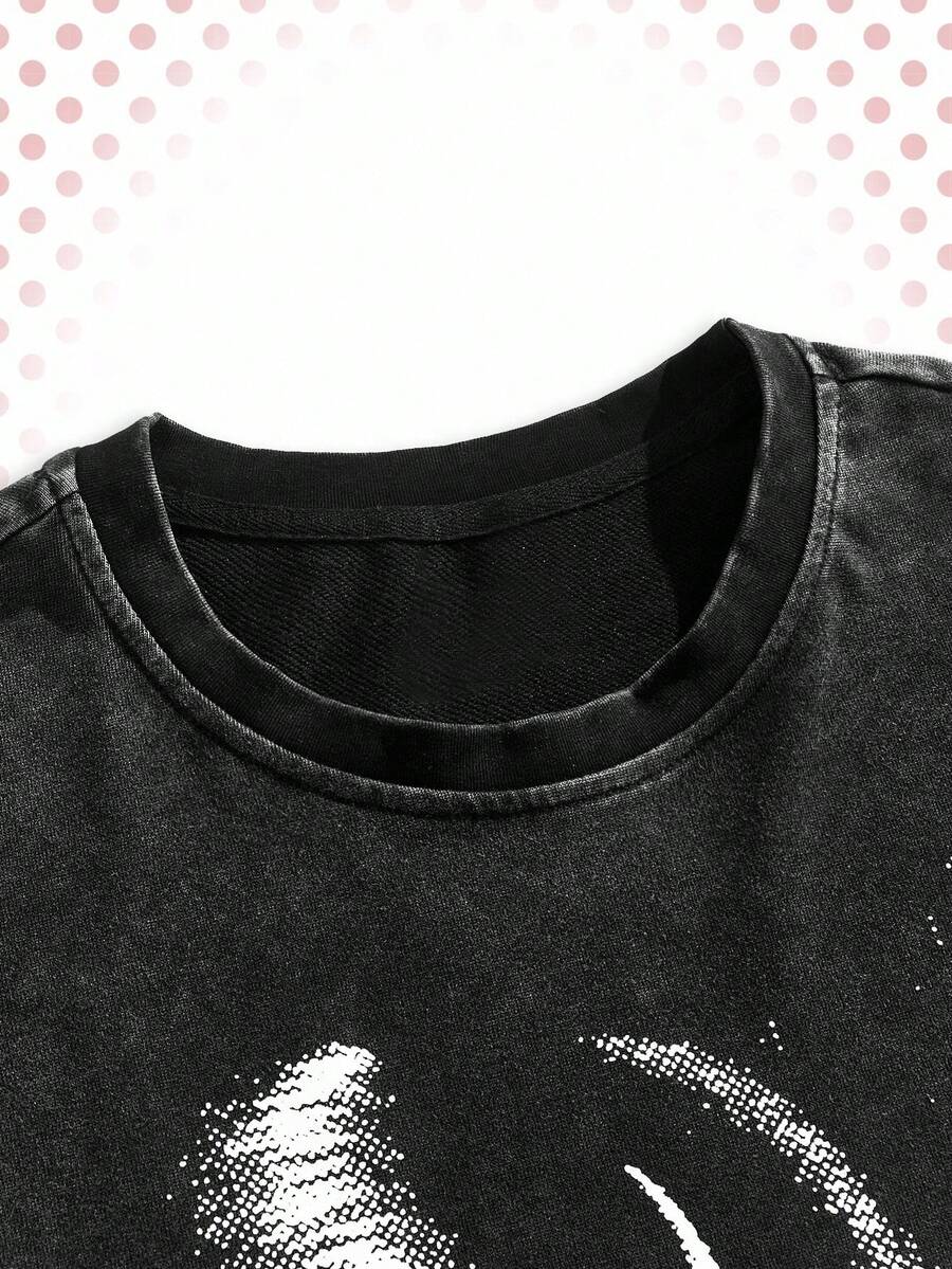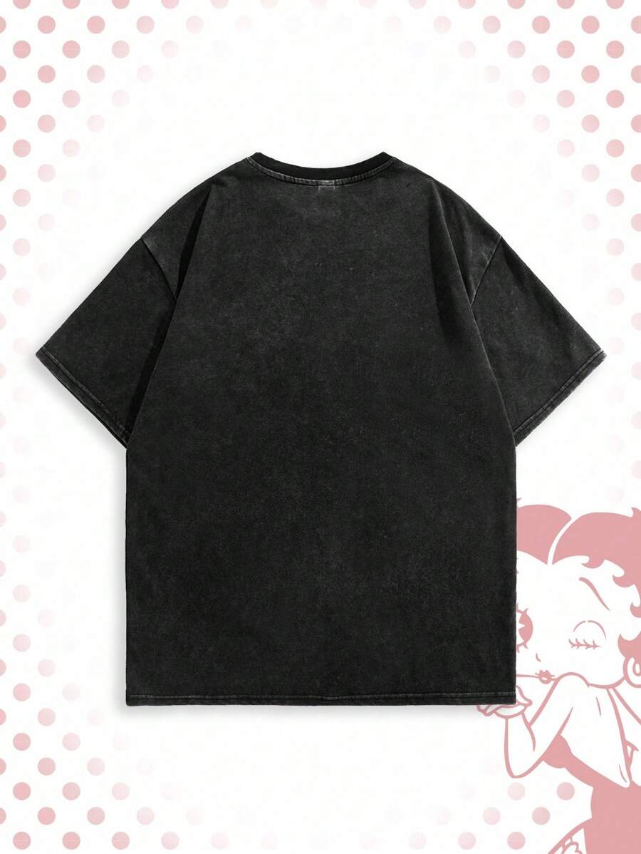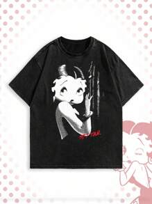 Betty Boop | ROMWE Men's Loose Street Figure Print Short Sleeve T-Shirt, Summer High Street Vintage Style