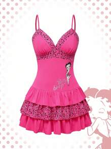 Betty Boop | ROMWE Vintage Sweet Retro Heart Print Tiered Layer Mini Dress For Women
