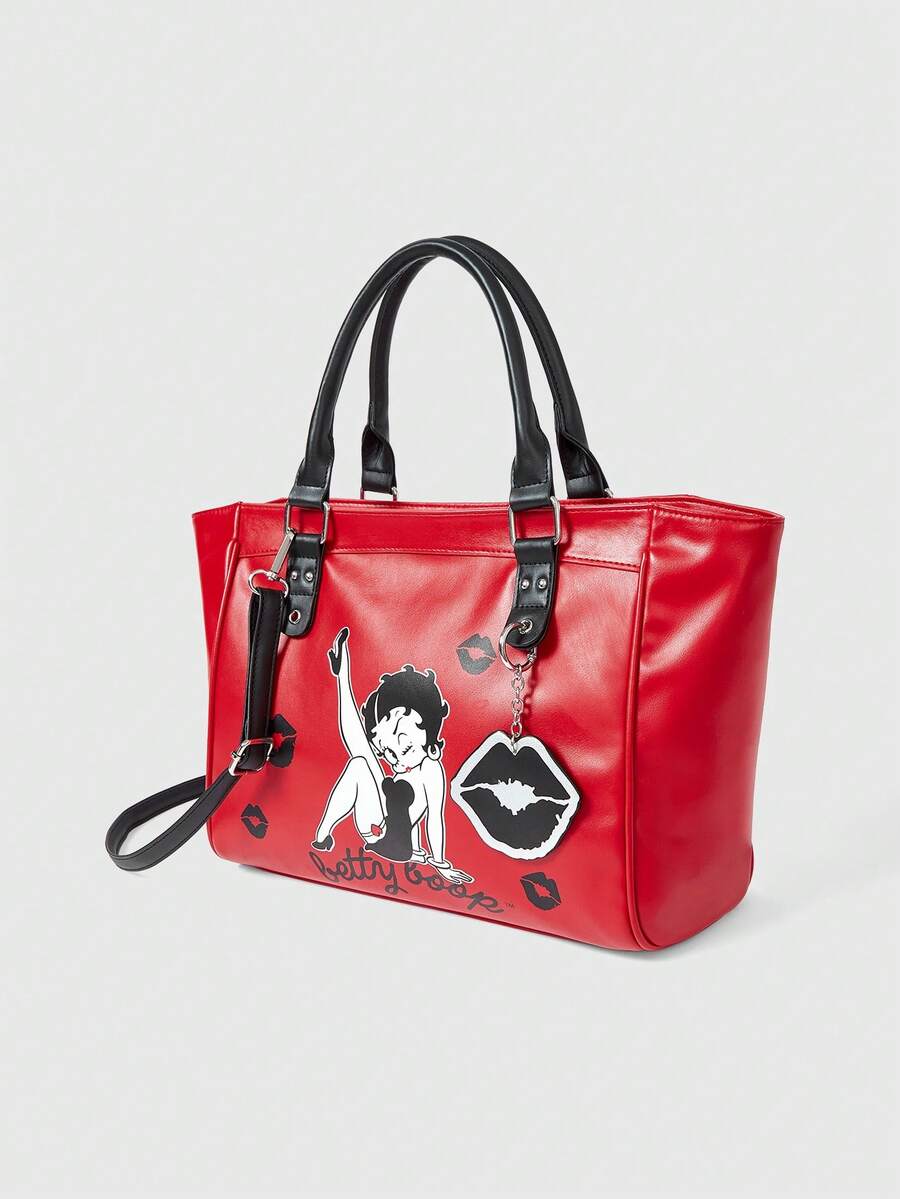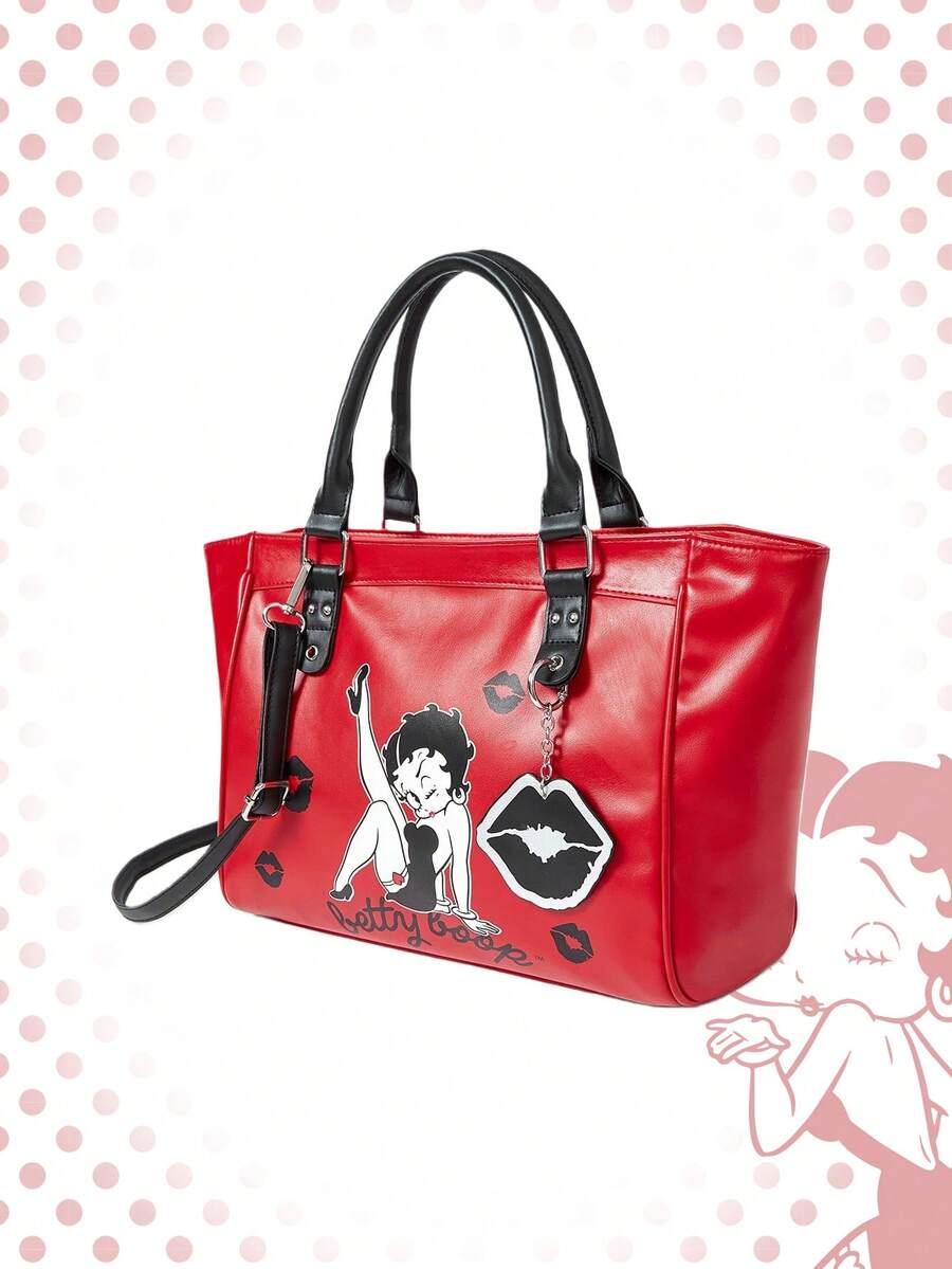 Betty Boop | ROMWE Women Cartoon Figure Graphic Pink Motorcycle Bag Fitness Commuting Tote Bag Soft Leather Travel Bag Eyelet Bombshell Bag