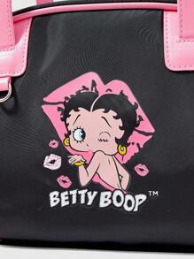 Betty Boop | ROMWE Women's Vintage Cute Embroidered English Letter Large Capacity Shoulder Tote Bag, Suitable For School, Commuting & Daily Wear