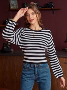Black And White Stripe Crop Sweater