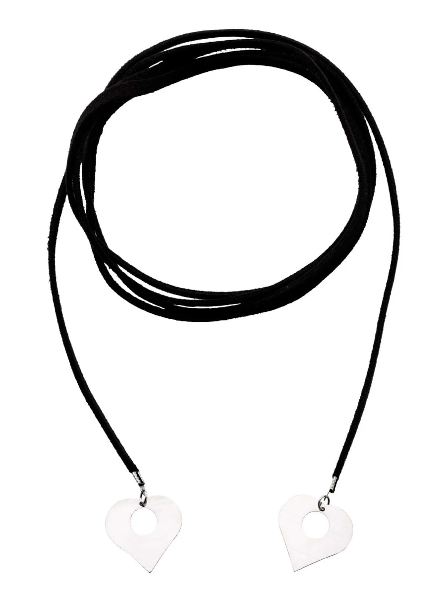 Black Cord Silver Heart Pendant Wrap Choker Necklace