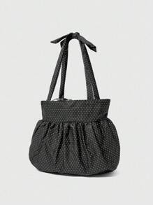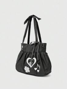 Anime Black Cute Bow Retro Heart Shoulder Bag For Women Minimalist Polka Dot Summer Flower & Music Note Large Capacity Tote Bag, Fits Laptop, Suitable For Daily Commute