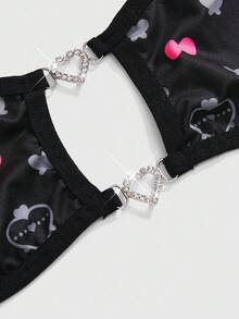 Black Jack X ROMWE Women's Allover Print Wireless Padded Bra & Thong Set, Comfortable Lingerie