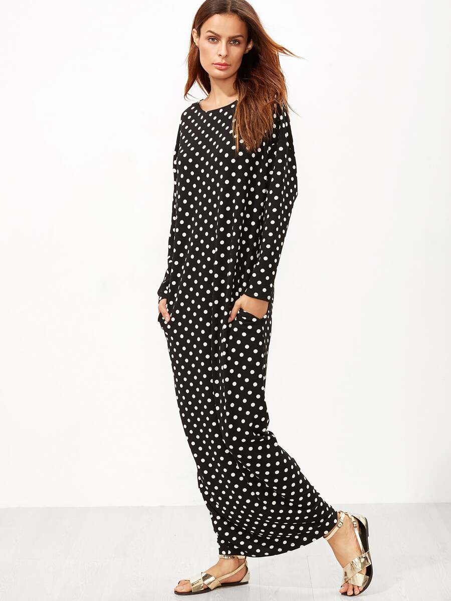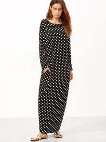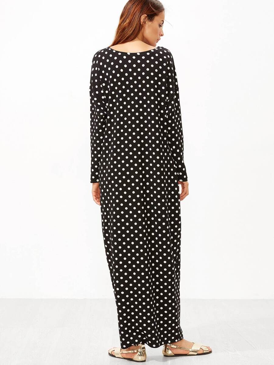 Black Polka Dot Print Cocoon Maxi Dress