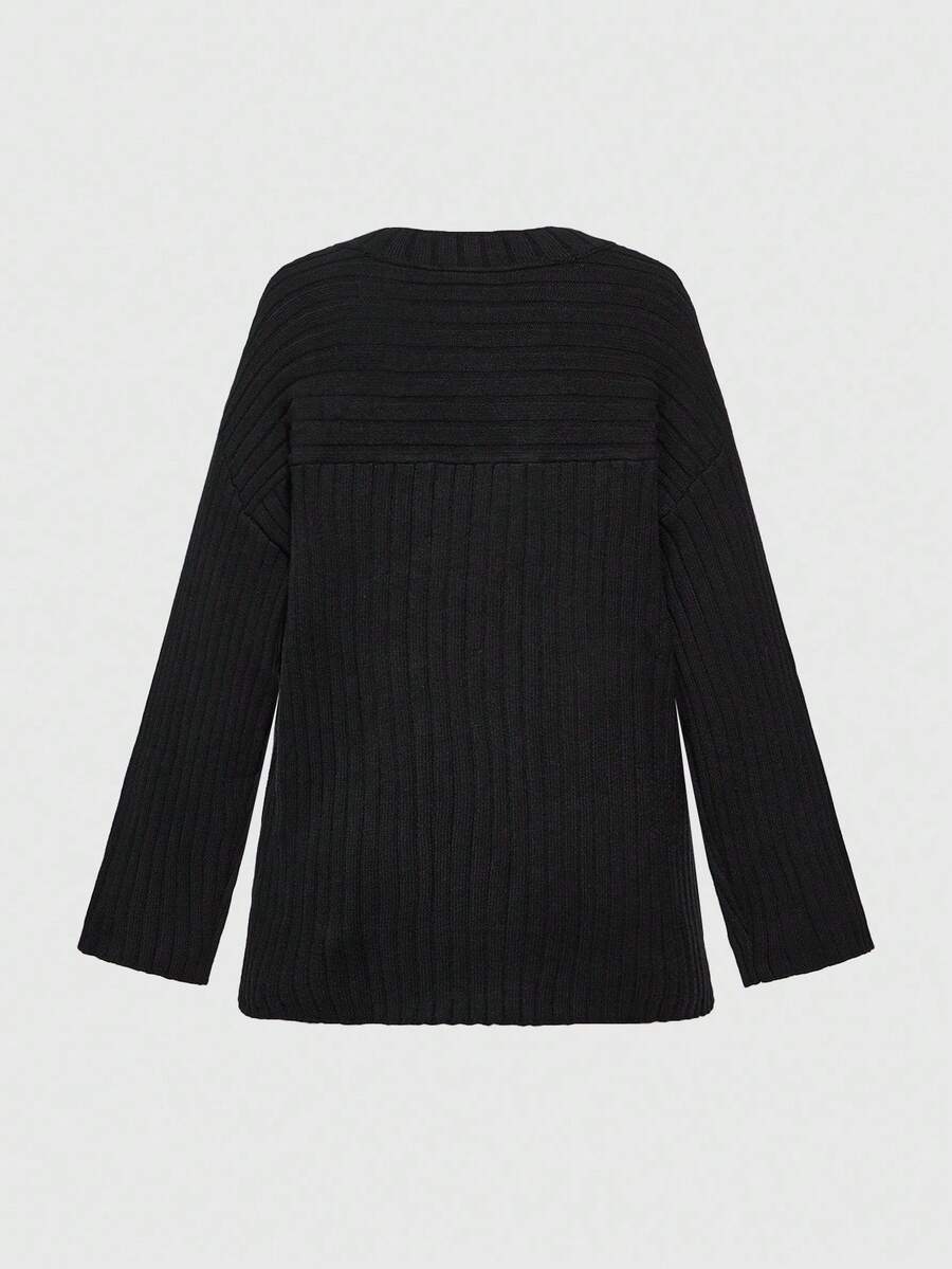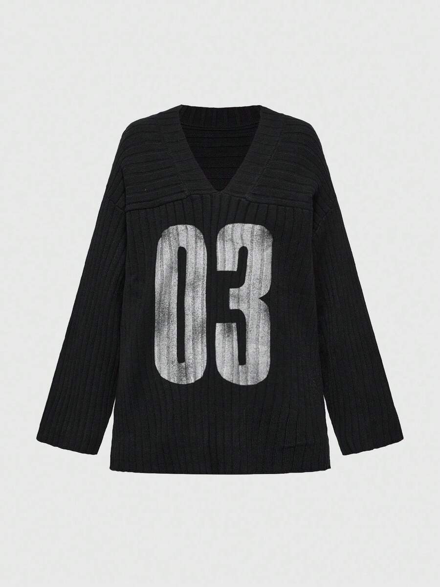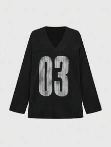 Grunge Punk Blockcore Digital Print V-Neck Loose Pullover Sweater