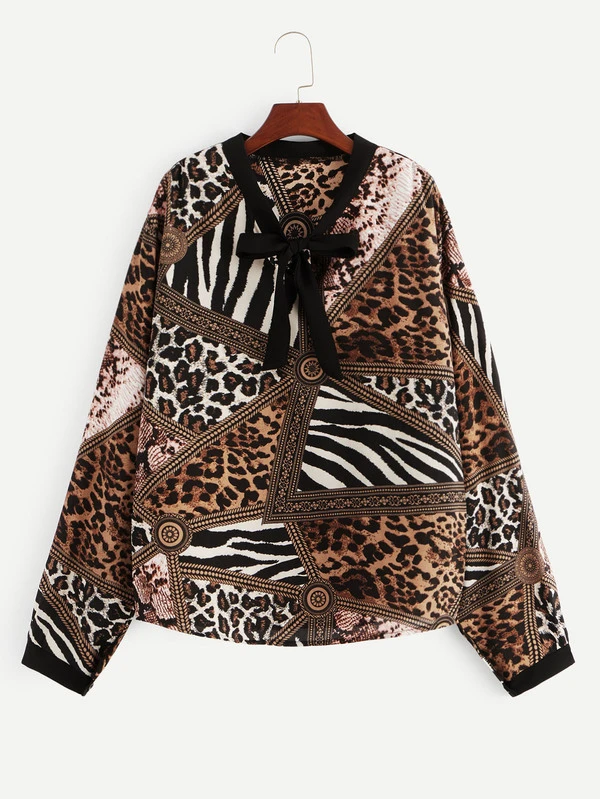 Plus Cheetah Print Bow Front Blouse