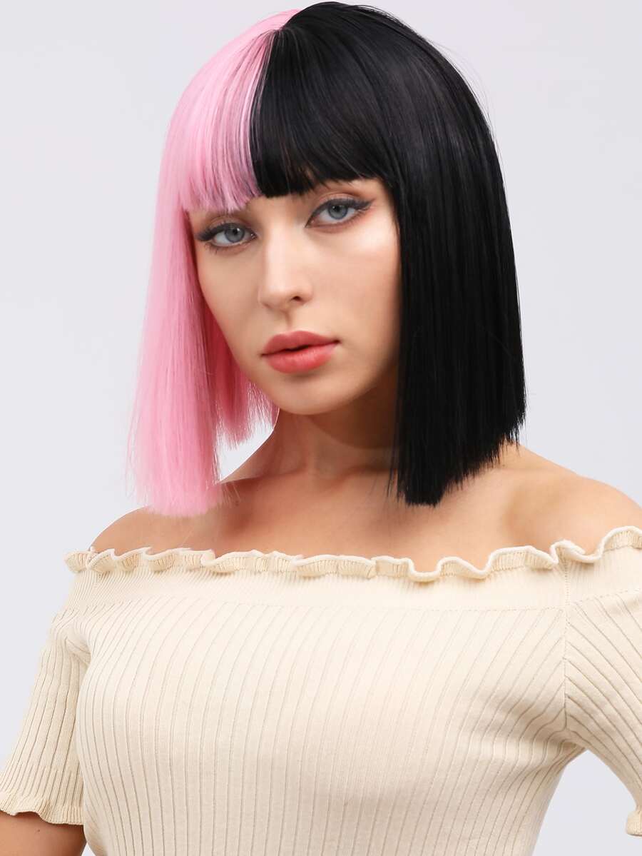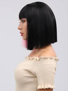Bob Wigs With Bangs Straight Hair Shot Wigs Green Color 12 Inch Heat Resistant Fiber Synthetic Wigs For Women Daily Used
