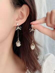 Bow Decor Bead Drop Earrings
