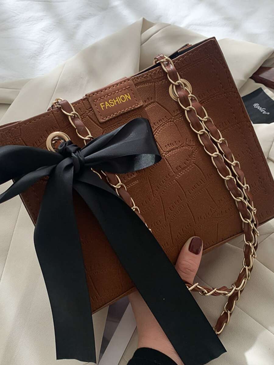 Bow Knot Crocodile Embossed Shoulder Bag