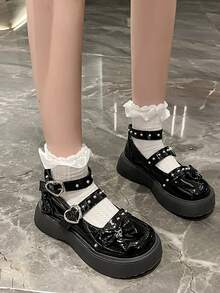 Bow & Studded Decor Flatform Mary Jane Shoes