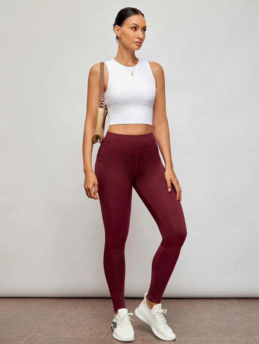 Breathable Softness Wide Waistband Sports Leggings With Phone Pocket