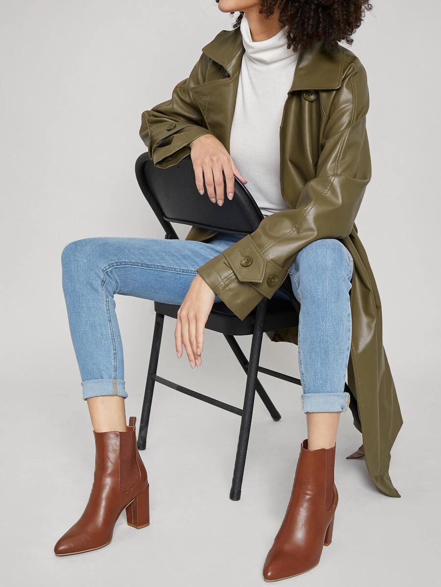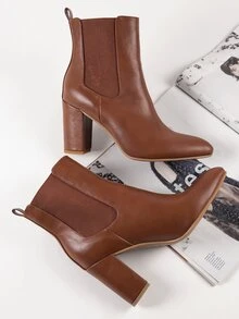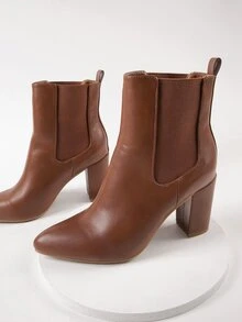 Brown Fake Leather Block Heel Chelsea Booties