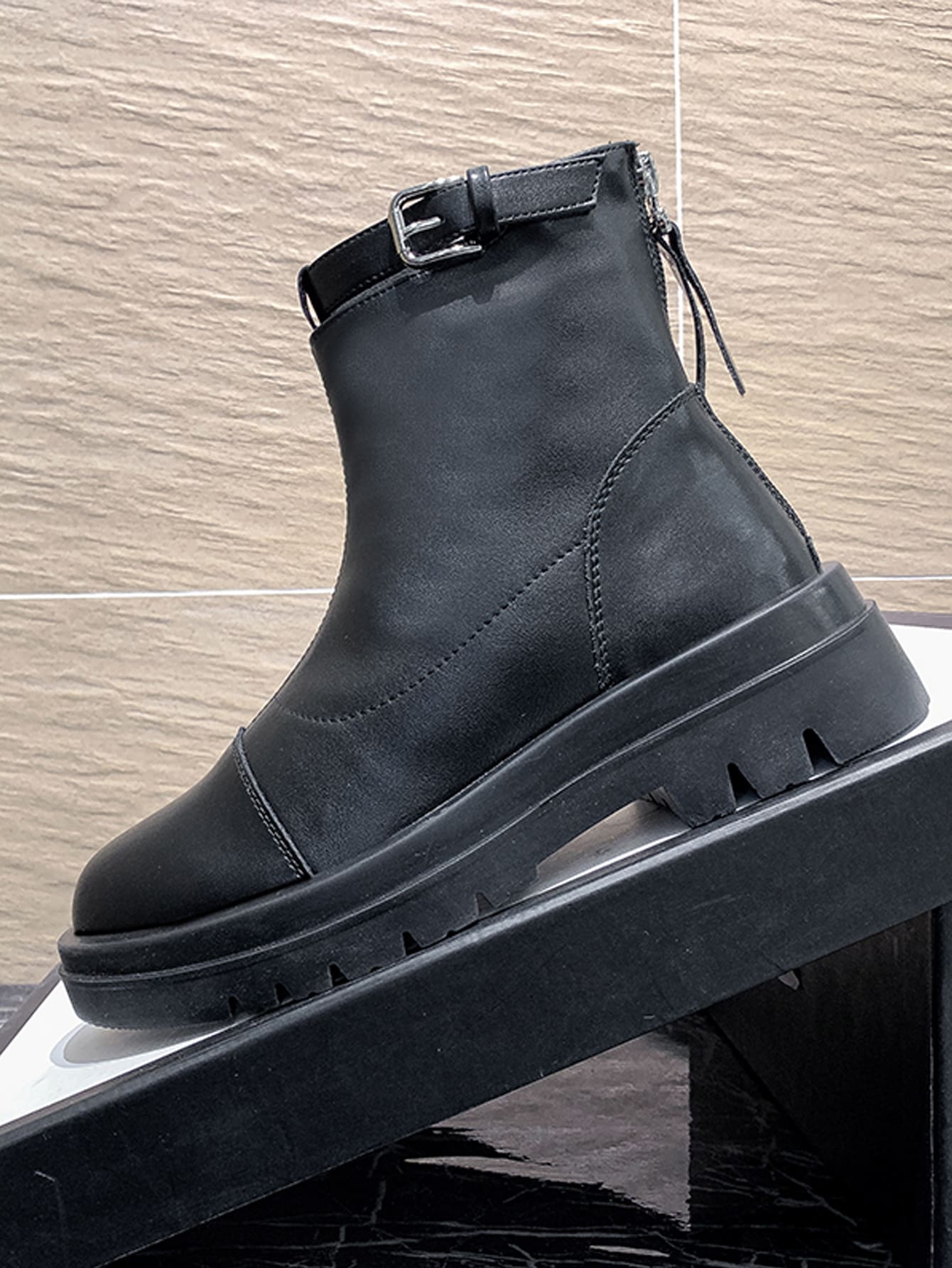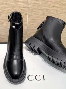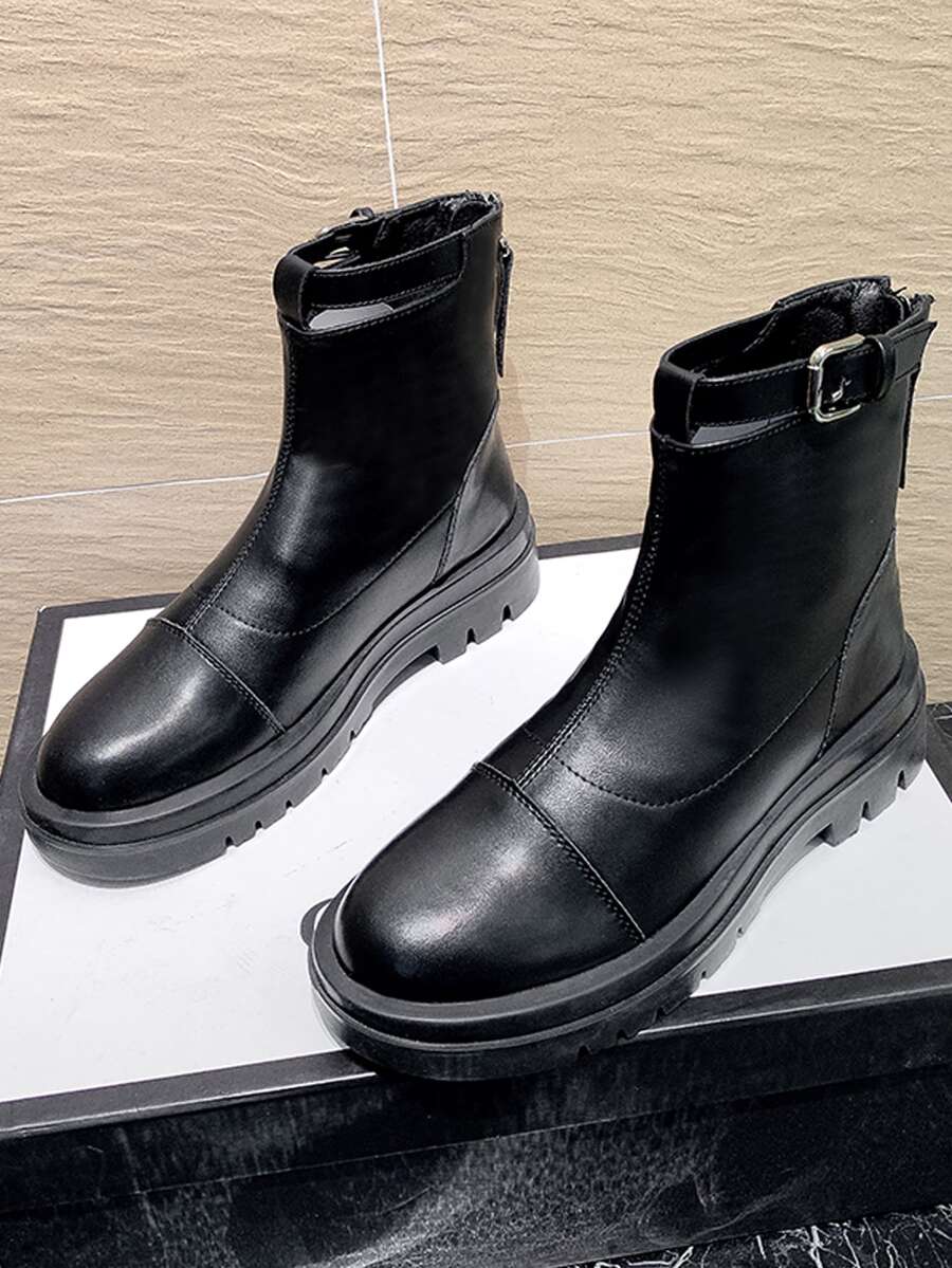 Buckle Decor Zip Back Ankle Boots