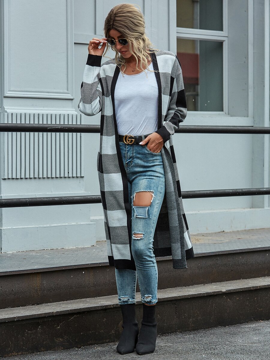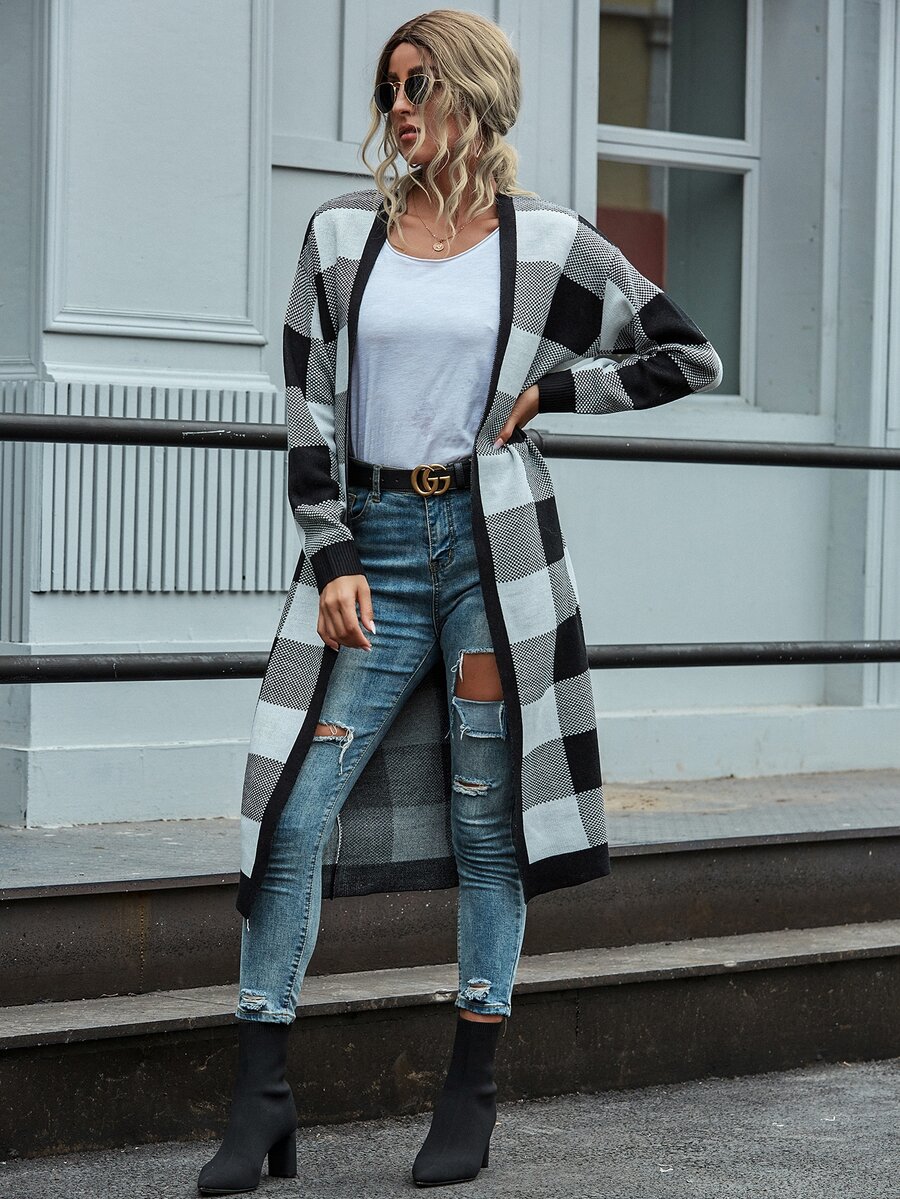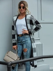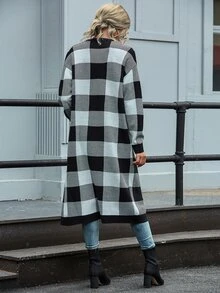 Buffalo Plaid Open Front Longline Cardigan