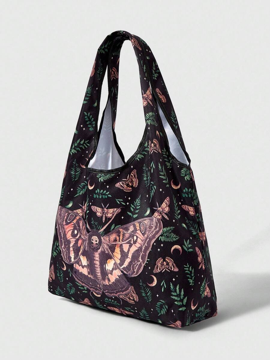 Fairycore Butterfly & Leaf Print Fashion Portable Gothic Style Large Capacity Women Tote Bag