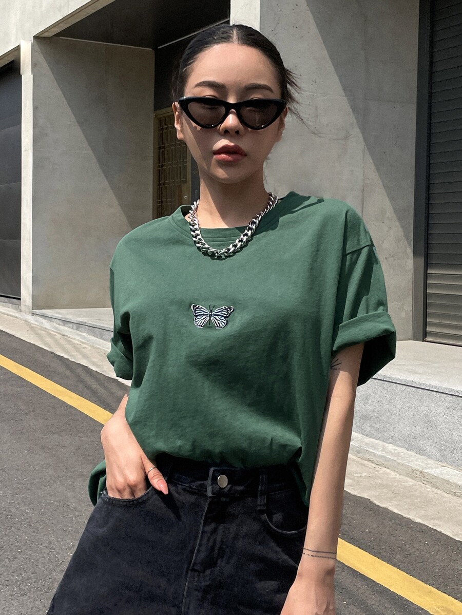 Butterfly Embroidery Drop Shoulder Tee Oversized T-Shirt