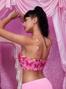 Butterfly Pattern Bow Front Lettuce Trim Bikini Top