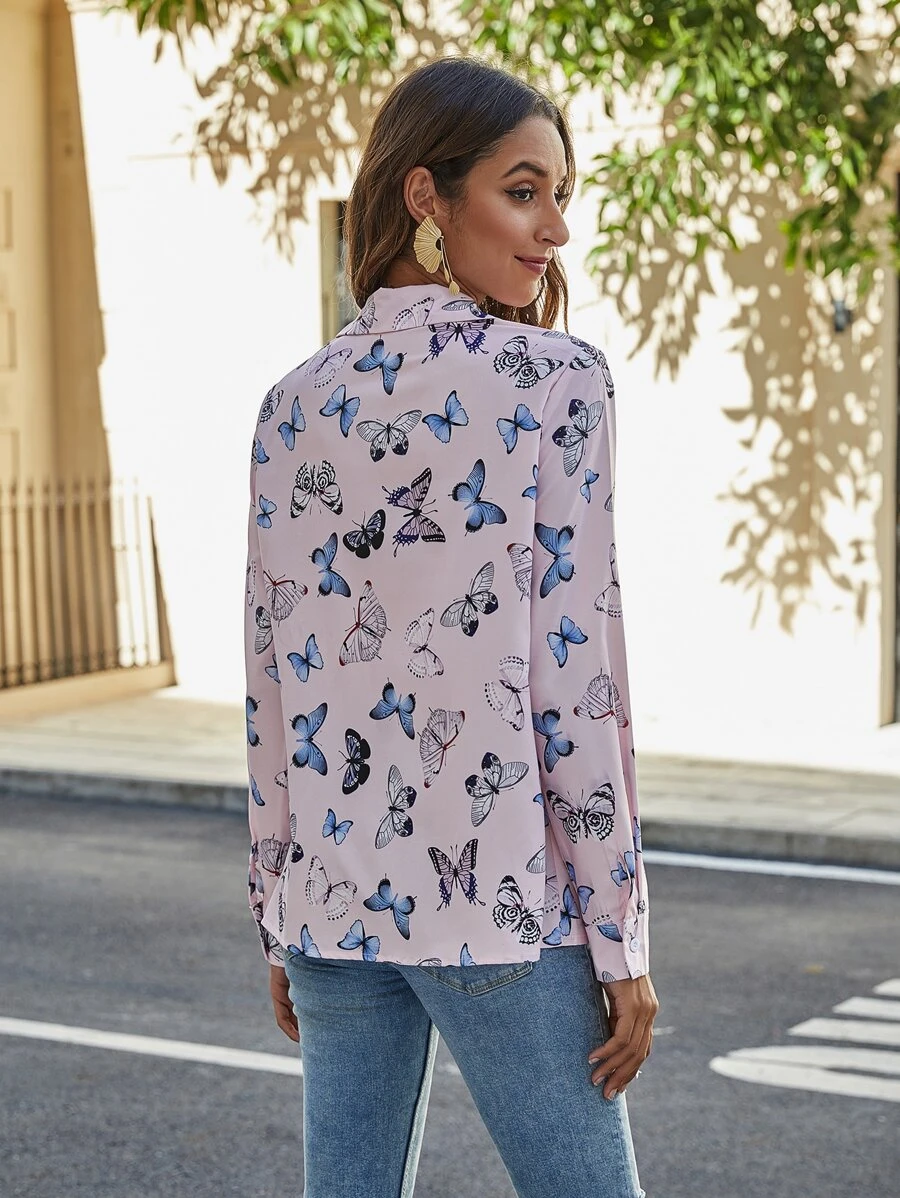 Butterfly Print Button Up Shirt