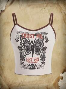 Ashley Baxter Butterfly Print Contrast Binding Cami Top