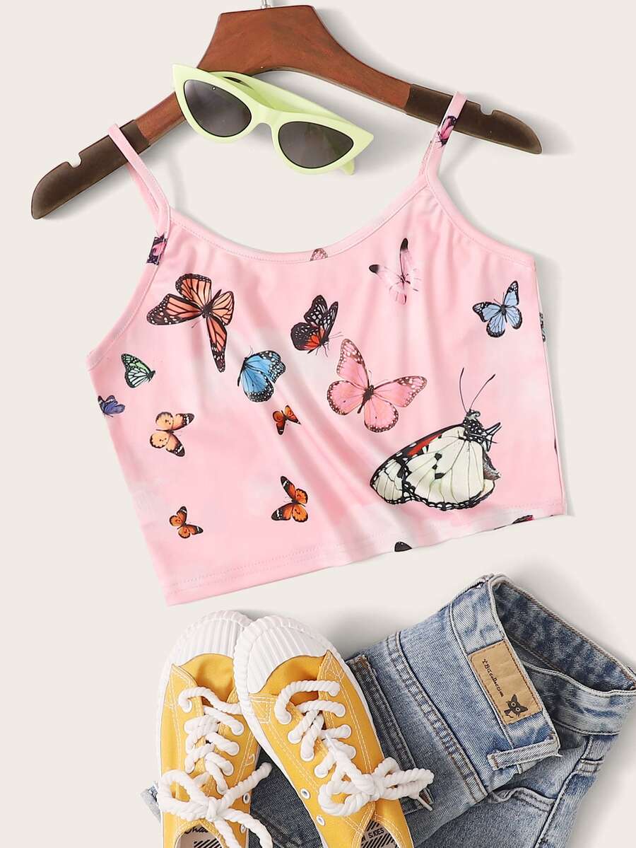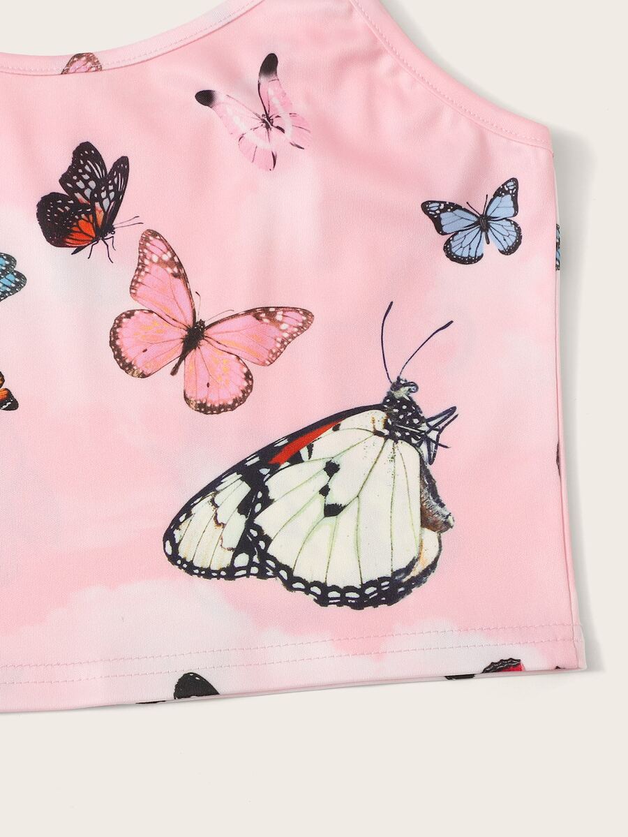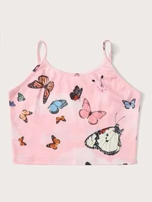 Butterfly Print Pink Crop Cami