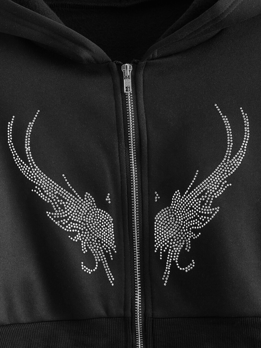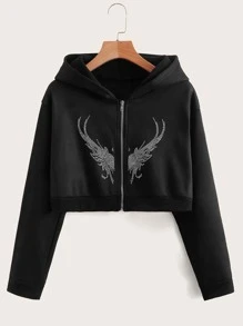 Butterfly Rhinestone Zip Up Hoodie