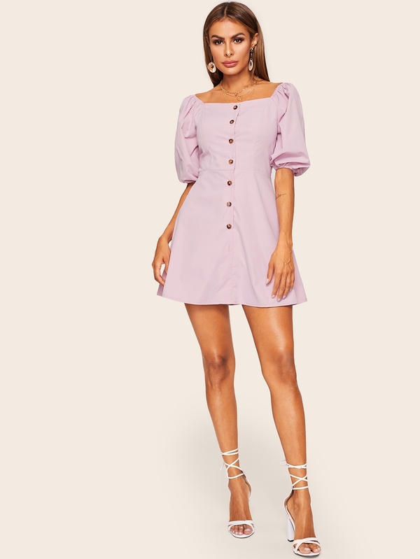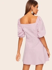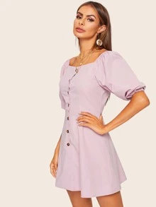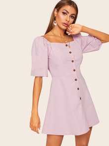 Square Neck Button Through Tea Dress