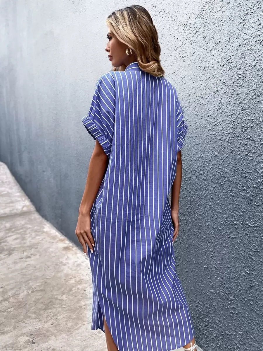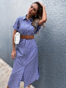 Button Through Striped Shirt Dress Without Belt