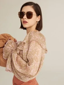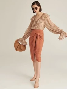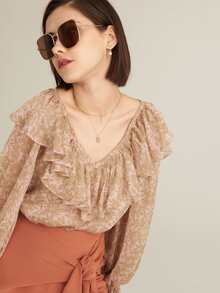CHIFFON RUFFLE TRIM JACQUARD TOP