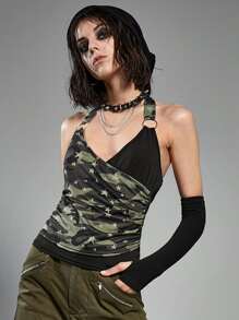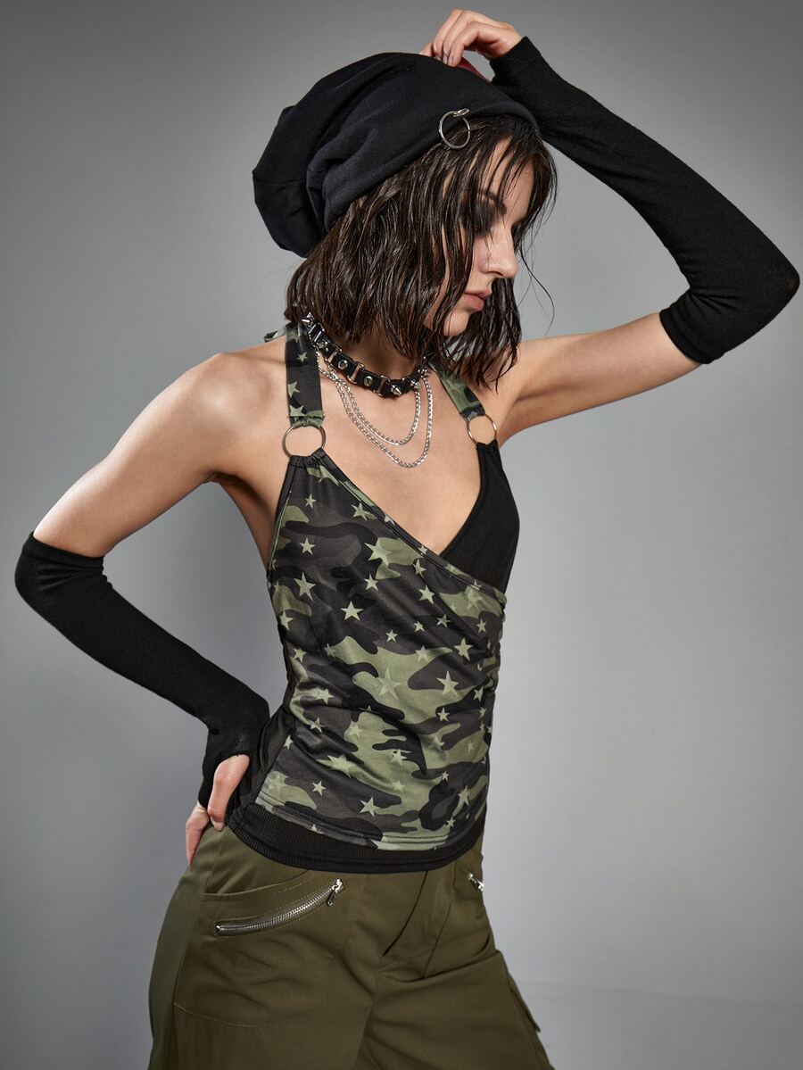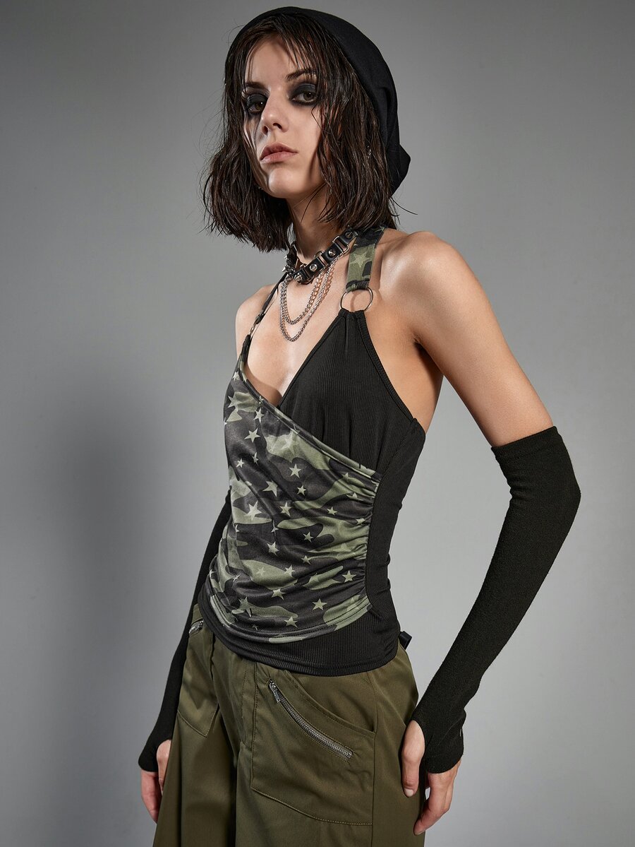 Camo Star Print Backless Halter Top