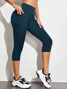 Capris Athletic Tights Breathable Softness High Stretch Wide Waistband Sports Leggings With Phone Pocket Yoga Women Pants