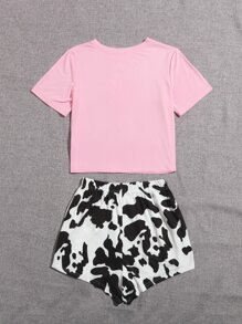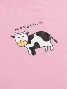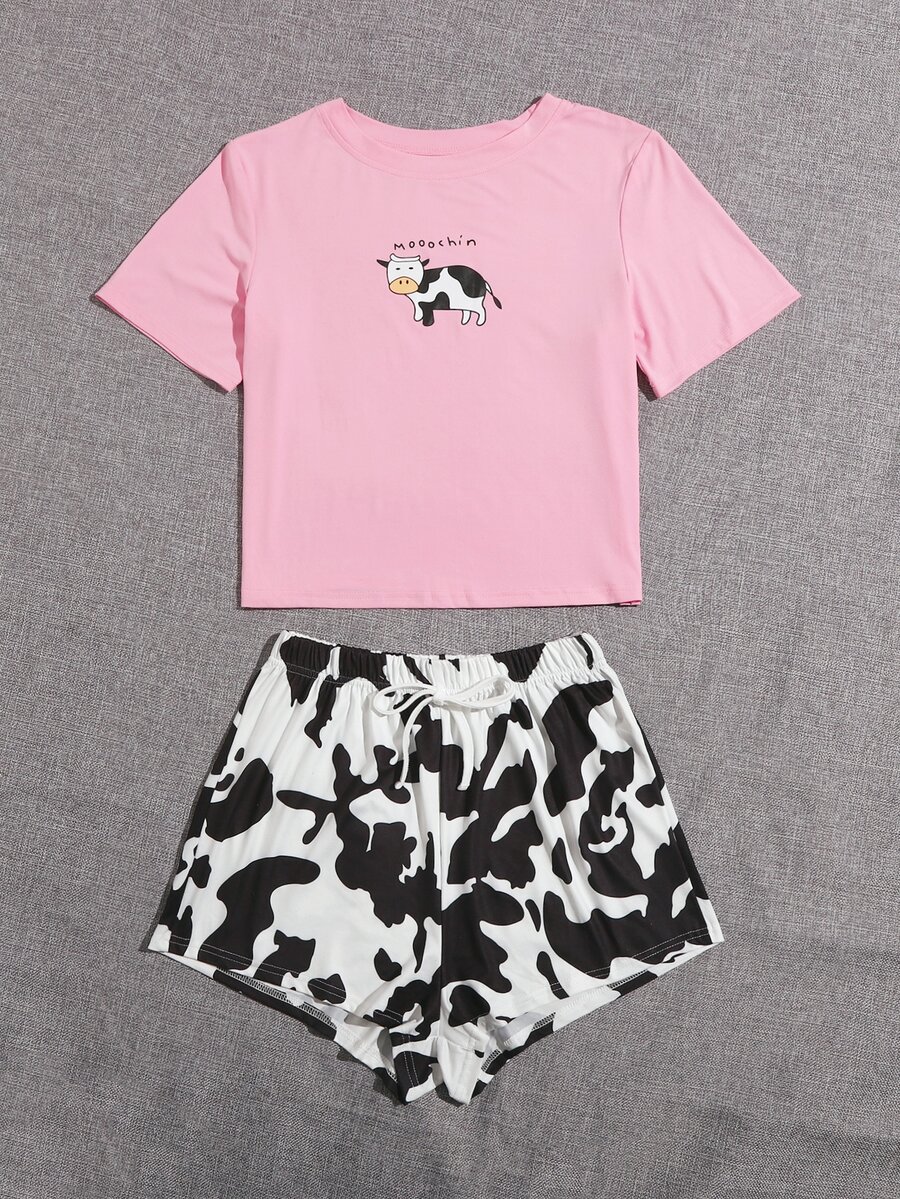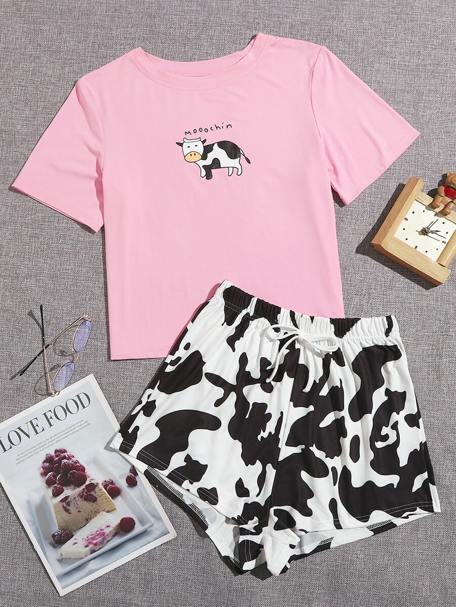 Cartoon And Cow Print Pajama Set
