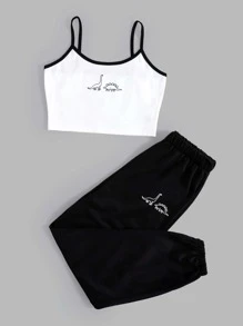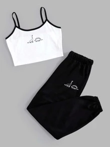 Cartoon Dinosaur Graphic Cami & Sweatpants