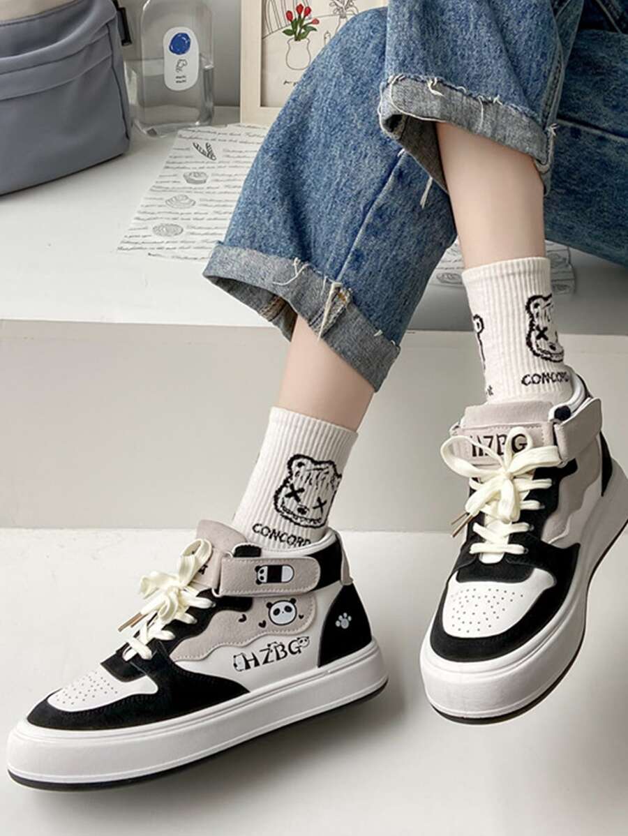 Cartoon Panda Print Skate Shoes